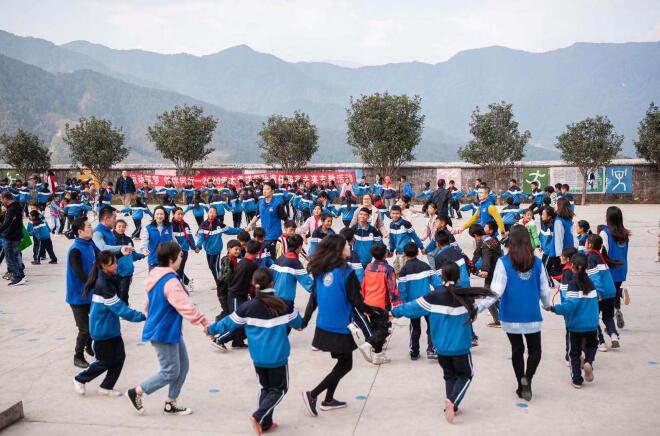 志愿者和孩子們跳課間操