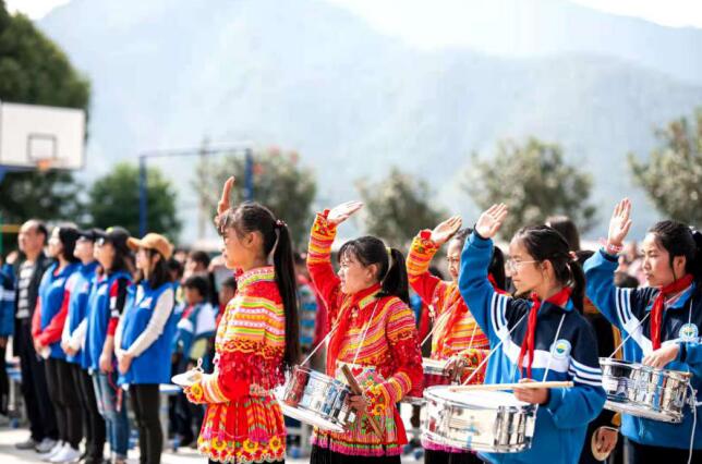 圍繞運(yùn)動(dòng)會(huì),志愿者帶領(lǐng)孩子做了各種準(zhǔn)備。體育科班出身的志愿者,為孩子們帶來(lái)了足球、籃球和排球課。雖然上課的時(shí)間不長(zhǎng),可孩子們對(duì)這些運(yùn)動(dòng)表現(xiàn)出極大的熱情?;@球架下站滿了個(gè)子高矮不一的學(xué)生,山間的空地成為足球場(chǎng),拋扔排球成為新的運(yùn)動(dòng)項(xiàng)目。音樂(lè)老師為學(xué)校組織了第一支小樂(lè)隊(duì),美術(shù)老師教孩子們畫出了他們心目的亞運(yùn)會(huì)……每一個(gè)孩子都自信地做特長(zhǎng)展示。