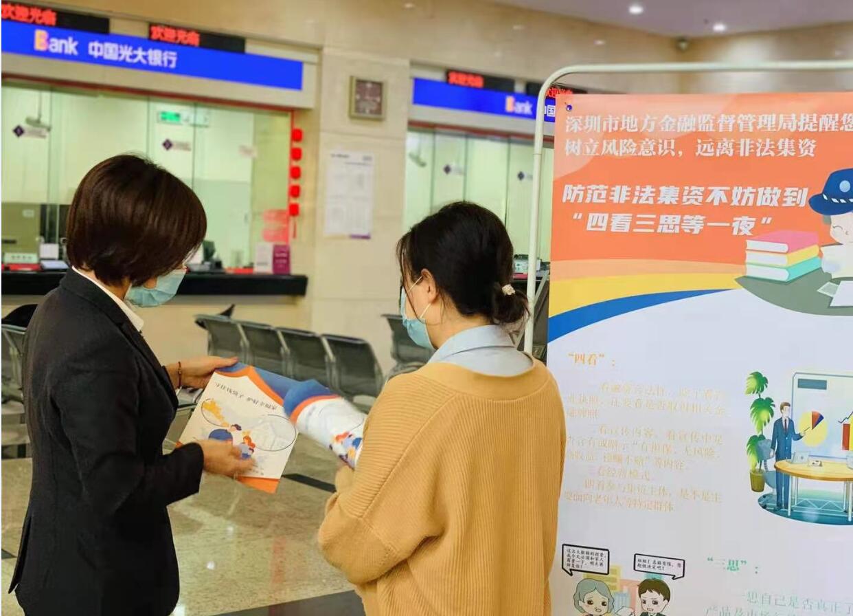 深圳新聞網(wǎng)·見圳客戶端2020年12月4日訊 近日,深圳市地方金融監(jiān)督管理局與深圳商報聯(lián)合舉辦的“守好錢袋子護好幸福家”防范非法集資巡展走進光大銀行深圳分行。