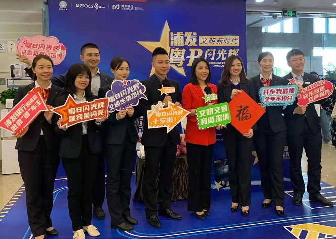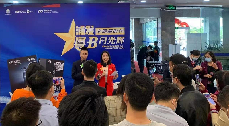 來到現(xiàn)場的主持人表示,“2021粵B閃光輝一眨眼已經(jīng)十周年了,這十年來我們見證了深圳車主開車文明素質(zhì)的提升。今天來到浦發(fā)銀行福田支行參加派車貼活動的車友,不僅是我們交通頻率的忠實聽眾,更是深圳眾多文明司機(jī)的優(yōu)秀代表。今天很開心把幸運送給了來到現(xiàn)場的車友,相信會有更多的深圳市民加入粵B閃光輝的隊伍,文明行車,為粵B添光彩!”