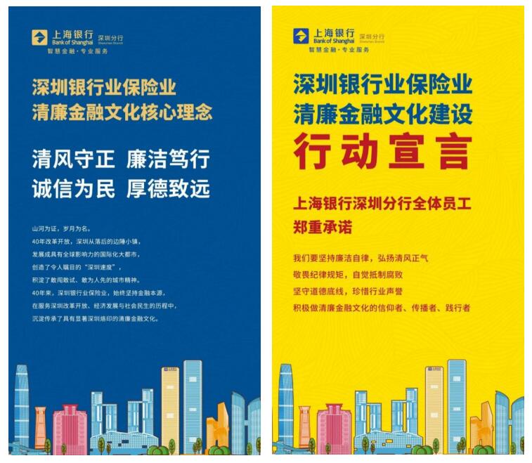 5月以來(lái),上海銀行深圳分行按照深圳銀保監(jiān)局、深圳銀行業(yè)協(xié)會(huì)指導(dǎo)要求,秉持聯(lián)合性、統(tǒng)一性、持續(xù)性原則,統(tǒng)一啟動(dòng)宣教行動(dòng)日,在線(xiàn)上、線(xiàn)下等宣傳陣地多樣化宣傳標(biāo)志性統(tǒng)一宣教文案,形成強(qiáng)烈的清廉金融文化宣教主題,營(yíng)造濃厚宣教氛圍。統(tǒng)一在分行內(nèi)部電梯間LED屏、餐廳電視屏、各網(wǎng)點(diǎn)電視顯示屏等載體上投放清廉金融文化宣教視頻;統(tǒng)一在網(wǎng)點(diǎn)走馬燈展示“深圳銀行業(yè)保險(xiǎn)業(yè)清廉金融文化核心理念—清風(fēng)守正、廉潔篤行、誠(chéng)信為民、厚德致遠(yuǎn)”等宣教標(biāo)語(yǔ);發(fā)布分行自制清廉金融宣教海報(bào),充分加入自身特色理念,融入我行智慧金融,專(zhuān)業(yè)服務(wù)的理念,并組織各單位在公眾號(hào)、微信、朋友圈積極學(xué)習(xí)轉(zhuǎn)發(fā),形成宣教合力。