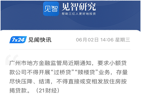 6月1日,央行發(fā)布《反洗錢(qián)法(修訂草案公開(kāi)征求意見(jiàn)稿)》,意見(jiàn)稿明確,特定非金融機(jī)構(gòu)應(yīng)參照金融機(jī)構(gòu)相關(guān)要求履行反洗錢(qián)義務(wù),對(duì)于特定非金融機(jī)構(gòu)的定義,征求意見(jiàn)稿也明確,包括提供房屋銷(xiāo)售、經(jīng)紀(jì)服務(wù)的房地產(chǎn)開(kāi)發(fā)企業(yè)或者房地產(chǎn)中介機(jī)構(gòu)。廣州則在6月2日也下發(fā)通知,要求小額貸款公司不得開(kāi)展“過(guò)橋貸”“贖樓貸”業(yè)務(wù)。