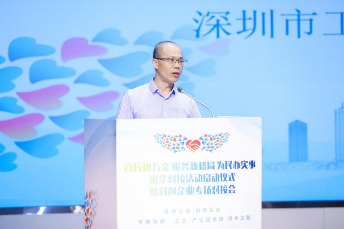 在啟動(dòng)儀式后的科創(chuàng)企業(yè)主題專場(chǎng)對(duì)接活動(dòng)中,深圳市科創(chuàng)委宣講了深圳地區(qū)充滿活力、富有效率的技術(shù)創(chuàng)新體系和基礎(chǔ)研究專項(xiàng)、平臺(tái)和載體專項(xiàng)、創(chuàng)新創(chuàng)業(yè)專項(xiàng)、協(xié)調(diào)創(chuàng)新專項(xiàng)等支持企業(yè)科技創(chuàng)新政策。建設(shè)銀行深圳市分行分享了集貸、投、孵、教于一體的科技創(chuàng)新孵化平臺(tái)——?jiǎng)?chuàng)業(yè)者港灣,可為中小科創(chuàng)企業(yè)提供全生命周期、連續(xù)可預(yù)期的創(chuàng)業(yè)支持,打造“金融 +科技 +產(chǎn)業(yè) +教育”的線下、線上科技創(chuàng)新綜合孵化生態(tài)。民生銀行深圳分行分享了精準(zhǔn)對(duì)接專精特新、小巨人的“科創(chuàng)貸”。招商銀行深圳分行分享了科創(chuàng)型企業(yè)全生命周期信貸產(chǎn)品體系和 PE初創(chuàng)貸、高新價(jià)值貸、創(chuàng)業(yè)擔(dān)保貸。浦發(fā)銀行深圳分行分享了根據(jù)科創(chuàng)企業(yè)成長(zhǎng)軌跡搭建服務(wù)產(chǎn)品體系以及專精特新小巨人貸、榮擔(dān)基金貸、融資擔(dān)保貸、上市促進(jìn)貸、科技多易貸、科技保險(xiǎn)貸。南洋商業(yè)銀行深圳分行分享了科創(chuàng)企業(yè)供應(yīng)鏈金融服務(wù)模式和1 +N商票保貼供應(yīng)鏈業(yè)務(wù)定制。