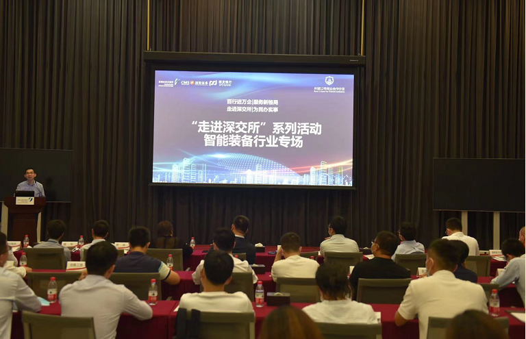 本次活動以智能裝備行業(yè)專場宣講與圓桌論壇為主,多家優(yōu)質(zhì)智能裝備企業(yè)參加?;顒娱_始,深圳證券交易所市場發(fā)展部與浦發(fā)銀行交易銀行部相關(guān)領(lǐng)導(dǎo)從國家政策面、經(jīng)濟面分析了中小企業(yè)、科創(chuàng)企業(yè)所處的歷史發(fā)展機遇,并介紹了“走進深交所”系列活動的初衷與意義——“信息共享、流程互通、功能互補,打造從0到1、從IP到IPO,共建為中小企業(yè)服務(wù)的金融生態(tài),攜手為國家經(jīng)濟發(fā)展貢獻力量”。隨后,深圳證券交易所、浦發(fā)銀行與招商證券介紹了智能裝備行業(yè)發(fā)展趨勢下的投融資規(guī)劃、上市路徑、支持政策以及相關(guān)金融服務(wù),并針對經(jīng)營發(fā)展困惑同與會企業(yè)進行一對一、面對面的交流。