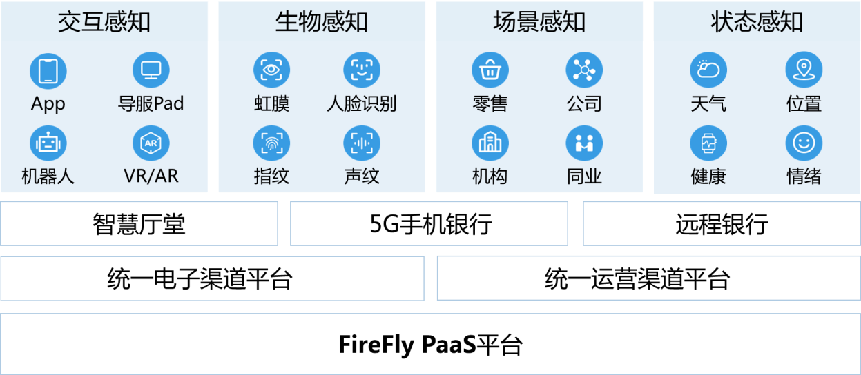 經(jīng)過多年的持續(xù)深耕迭代,民生銀行已形成覆蓋交互感知、生物感知、場(chǎng)景感知、狀態(tài)感知的全方位感知技術(shù),并通過統(tǒng)一電子渠道、統(tǒng)一運(yùn)營(yíng)渠道、 FireFly PaaS三大基礎(chǔ)技術(shù)平臺(tái),集中發(fā)力渠道能力建設(shè)及整合,著力打造有溫度的銀行。