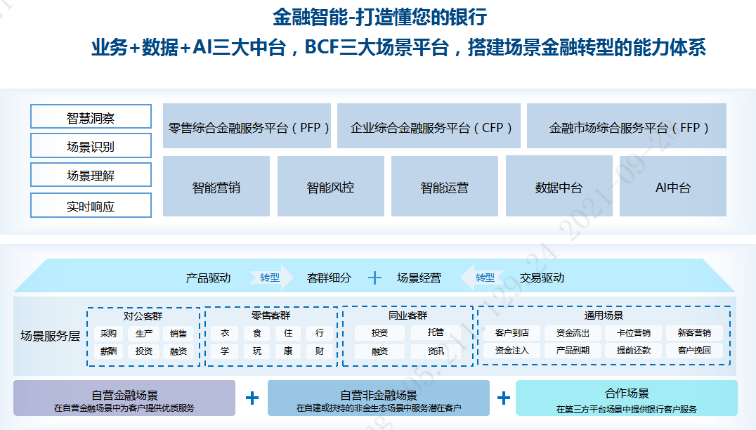 零售業(yè)務(wù)領(lǐng)域(C端),聚焦場(chǎng)景金融、智能營(yíng)銷、智能風(fēng)控、智能收單、移動(dòng)金融等重點(diǎn)業(yè)務(wù)領(lǐng)域,構(gòu)建財(cái)富管理、小微生態(tài)、消費(fèi)信貸等金融場(chǎng)景,持續(xù)打造以零售綜合金融服務(wù)平臺(tái)(PFP)為核心的零售策略應(yīng)用及場(chǎng)景金融體系。