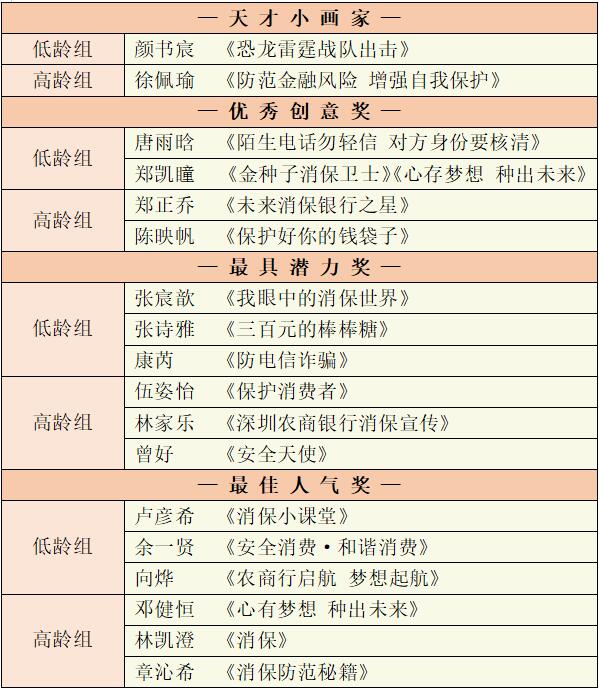 一直以來,深圳農(nóng)商銀行致力為有夢想、有才華的青少年提供一個(gè)鍛煉自己和展現(xiàn)自我的平臺,本屆“我是小小繪畫家”消保主題繪畫大賽的開展,通過畫面呈現(xiàn),也更直觀地將金融風(fēng)險(xiǎn)防范知識普及給更多人群。后續(xù),深圳農(nóng)商銀行還會(huì)將此次大賽的優(yōu)秀作品進(jìn)行系列巡展,敬請期待。