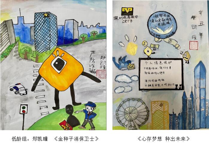 本屆“我是小小繪畫家”消保主題繪畫大賽,圍繞“孩子眼中的消保世界”題材展開,體現(xiàn)孩子對消費(fèi)者權(quán)益保護(hù)、金融風(fēng)險(xiǎn)防范、自我保護(hù)能力提升等方面的認(rèn)識,通過畫筆,描繪孩子眼中的金融消保工作。同時(shí),也是積極落實(shí)中國人民銀行深圳市中心支行、深圳銀保監(jiān)局、深圳銀促會(huì)組織開展的“金融知識普及月”“金融聯(lián)合教育宣傳月”活動(dòng)號召,聚焦青少年人群,開展金融知識普及宣教活動(dòng)。