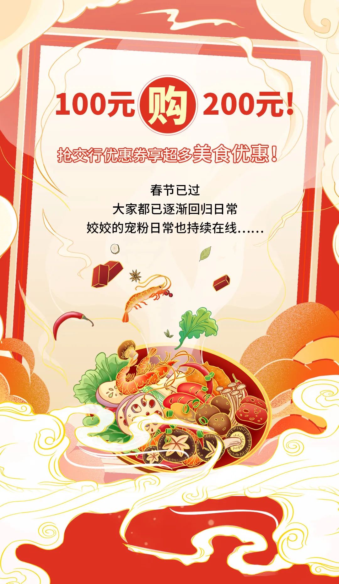 100元購200元?搶交行優(yōu)惠券享超多美食優(yōu)惠!
