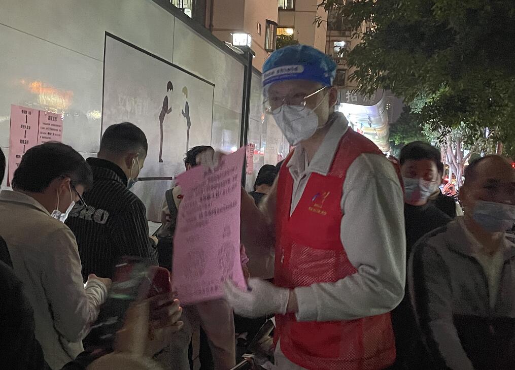 2月18日,青年志愿者們顧不上吃晚飯,一下班就奔赴南園社區(qū)核酸篩查檢測點(diǎn),與南園社區(qū)的志愿者們一起投入到維護(hù)核酸采集秩序的隊(duì)伍中,一直服務(wù)到深夜。