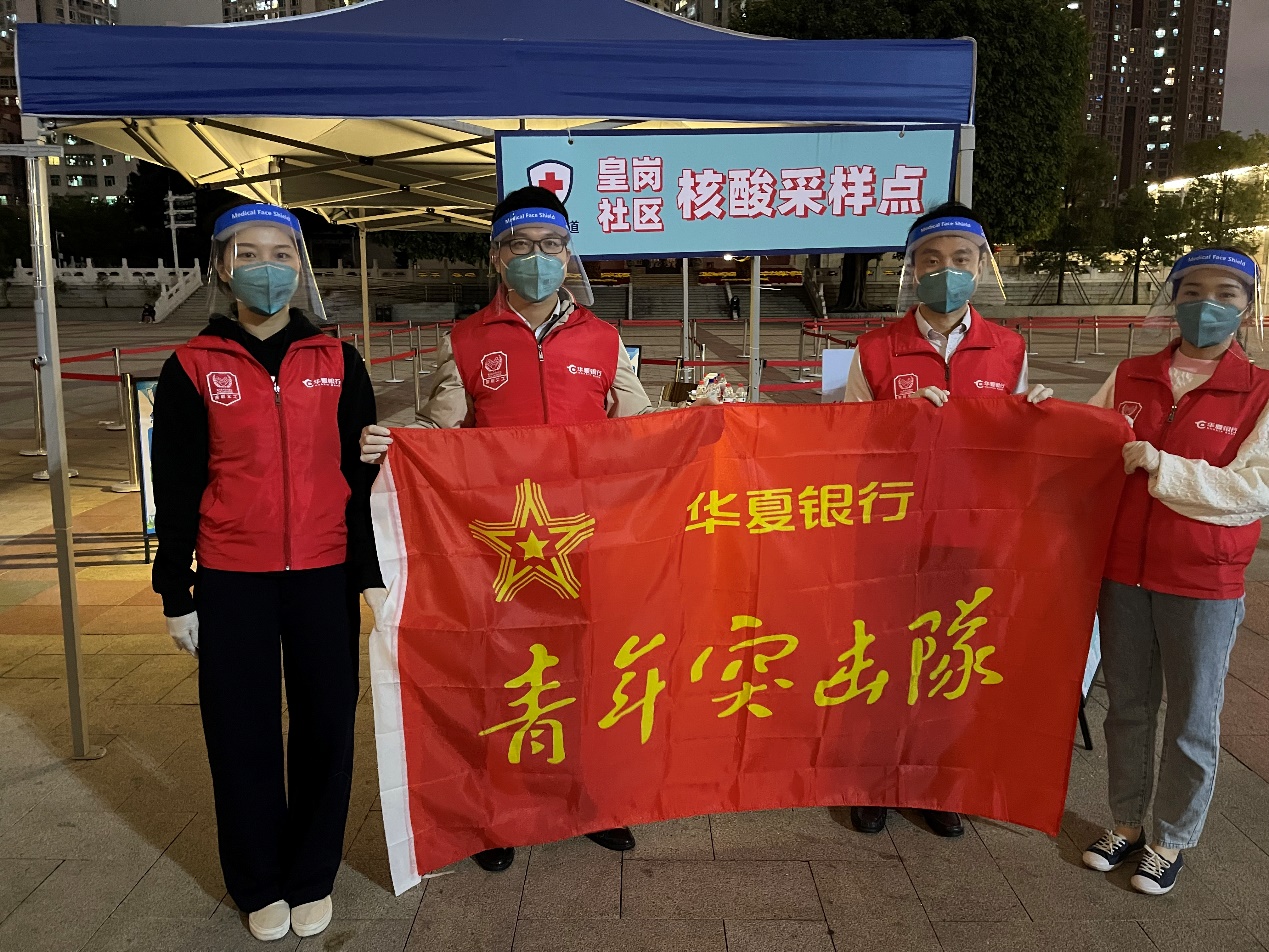 2月18日晚,寒風(fēng)瑟瑟的夜里,皇崗社區(qū)核酸采樣點還排著長龍。華夏銀行深圳分行的黨員、青年團(tuán)員迅速集結(jié)為“青年突擊隊”,在做好安全防護(hù)的基礎(chǔ)上,深入福田街道皇崗文化廣場、高發(fā)城馳廣場核酸采集點,協(xié)助防疫工作組維護(hù)現(xiàn)場秩序、身份信息登記等志愿服務(wù)工作,幫助社區(qū)提升核酸檢測效率。高新支行儲雨欣耐心地指導(dǎo)一位抱著小孩的阿姨錄入核酸檢測信息,她趕到核酸采樣點已經(jīng)接近晚上8點?!皠倓倧闹熊堎~下班,雖然有些晚了,但我還是想來。”
