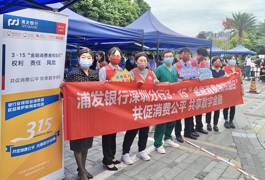 讀特客戶端 ·深圳新聞網(wǎng)2022年3月15日訊(通訊員 王曦晨)為不斷加強(qiáng)金融消費(fèi)者保護(hù),全力維護(hù)經(jīng)濟(jì)金融安全和消費(fèi)者合法權(quán)益,增強(qiáng)金融消費(fèi)者獲得感,值此“315”消費(fèi)者權(quán)益保護(hù)教育宣傳周之際,浦發(fā)銀行深圳分行秉持“以人民為中心”的消保發(fā)展思想,陸續(xù)開(kāi)展金融知識(shí)普及系列活動(dòng),切實(shí)增強(qiáng)廣大金融消費(fèi)者的金融決策力、風(fēng)險(xiǎn)防范意識(shí)和獲得感。