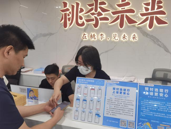 工商銀行穿戴式硬錢包,家長(zhǎng)在培訓(xùn)機(jī)構(gòu)使用數(shù)字人民幣預(yù)付消費(fèi)功能付款。