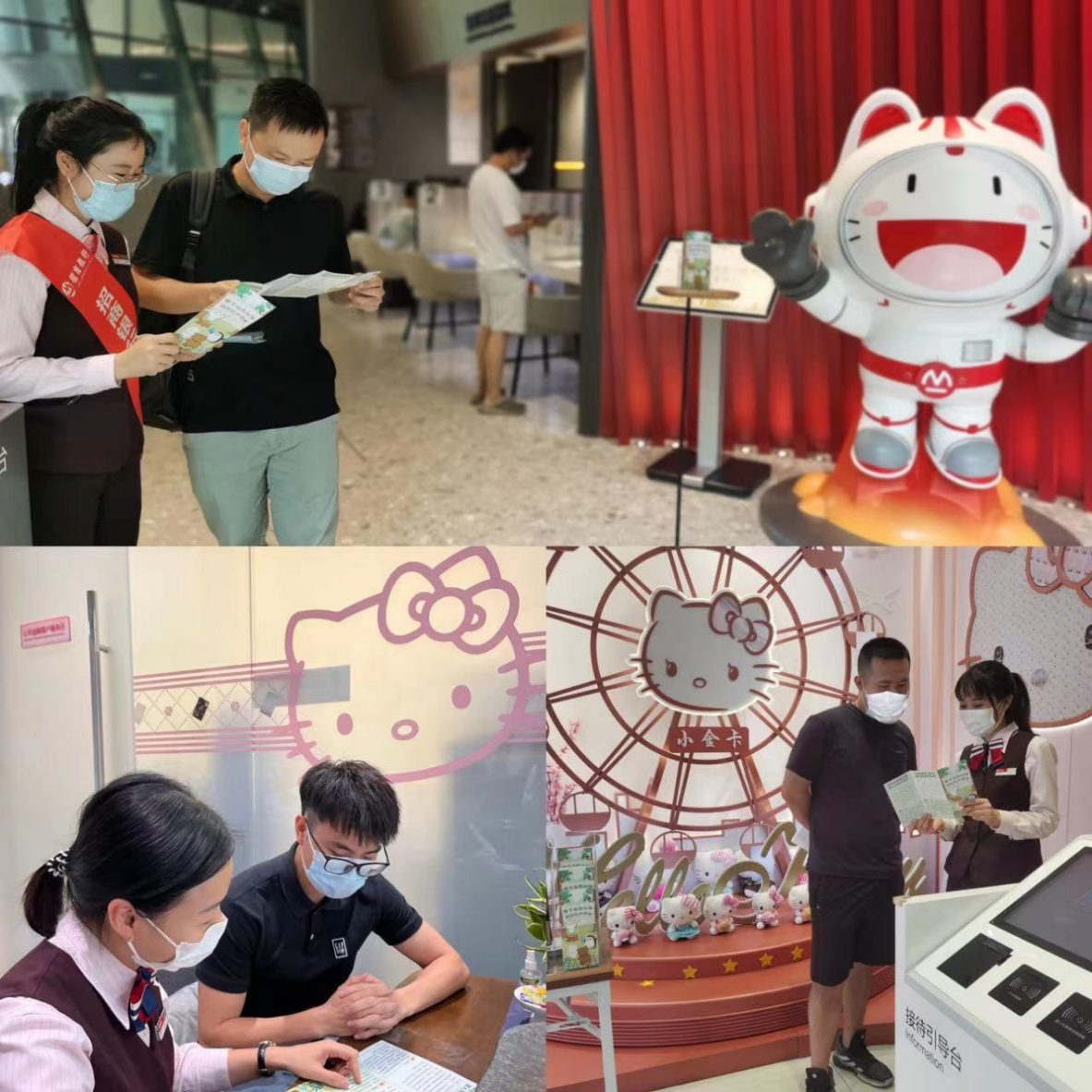 9月1日起,招商銀行深圳分行在“Hello Kitty”主題網(wǎng)點——益田支行、“小招喵+QQ企鵝”主題網(wǎng)點——漢京中心支行,兩大熱門主流IP特色網(wǎng)點,投放9月主題宣傳海報、活動口號等,自帶流量吸引金融消費者參觀打卡。同時,該行全部網(wǎng)點電子跑屏統(tǒng)一滾動播放主題活動及系列口號,營造濃厚的宣傳氛圍。
