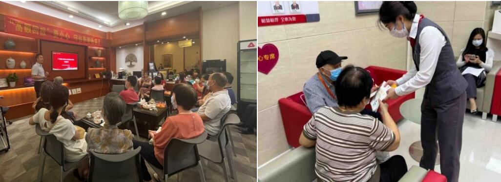各網(wǎng)點邀請附近的老年客戶到行參與講座,以目前典型的養(yǎng)老騙局作為切入點,通過播放分行自制養(yǎng)老防詐小短片,以生動的語言向老年人揭示一些宣稱以房養(yǎng)老為名,誘騙老年人抵押房產(chǎn)購買“高收益”理財產(chǎn)品等進(jìn)行非法集資詐騙的陷阱,向老年人普及新型詐騙趨勢,拓寬信息交流渠道,充分發(fā)揮銀行金融知識宣傳的網(wǎng)點效應(yīng)。