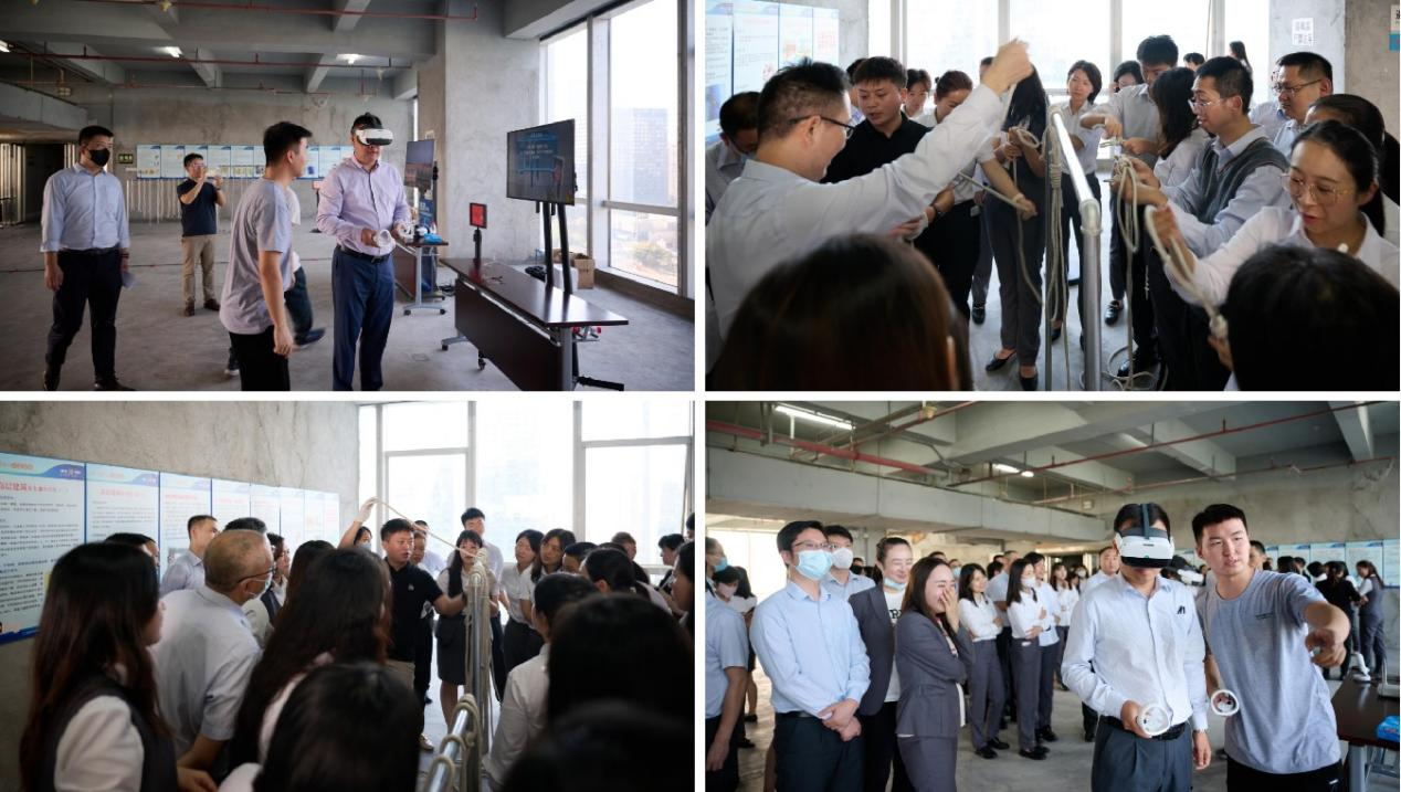 在完成避難集結后,廣發(fā)銀行深圳分行組織現(xiàn)場員工開展消防知識培訓。培訓主要采用理論知識與實踐操作相結合的模式,將活動現(xiàn)場劃分為VR虛擬安全場景、消防逃生繩結、消防安全逃生屋、滅火器材及防毒面具等體驗區(qū),每個區(qū)域均安排了專業(yè)講師講解相關知識,并協(xié)助員工操作和使用相關器材設備。員工們通過親身參與,學習了消防器材使用方法和高層火災逃生技能。