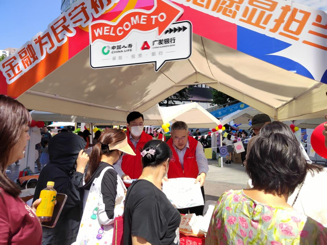 廣發(fā)銀行深圳分行紀(jì)委書記杜經(jīng)濤向現(xiàn)場群眾發(fā)放宣傳購物袋