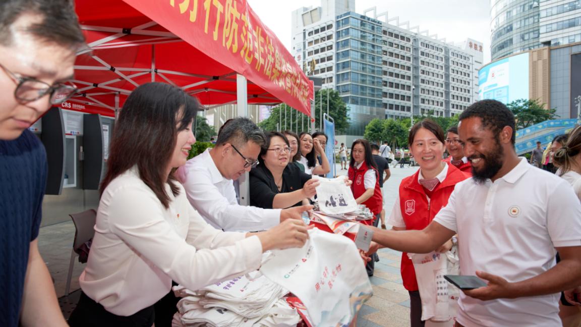 活動現(xiàn)場毗鄰中國規(guī)模最大、產(chǎn)品種類最齊全的綜合電子專業(yè)交易市場“華強電子世界”,人流量密集。廣發(fā)銀行深圳分行宣傳志愿者積極向過往群眾分發(fā)“防詐反詐”“金融消費者八項權(quán)益”“反洗錢”“征信知識”“資管新規(guī)”“人民幣真?zhèn)巫R別”等宣傳材料,一對一耐心解答群眾對信用貸款、規(guī)范用卡等業(yè)務(wù)咨詢,并通過講解最新詐騙案例剖析生活中常見金融風(fēng)險,幫助群眾提升風(fēng)險識別能力,守好百姓“錢袋子”。