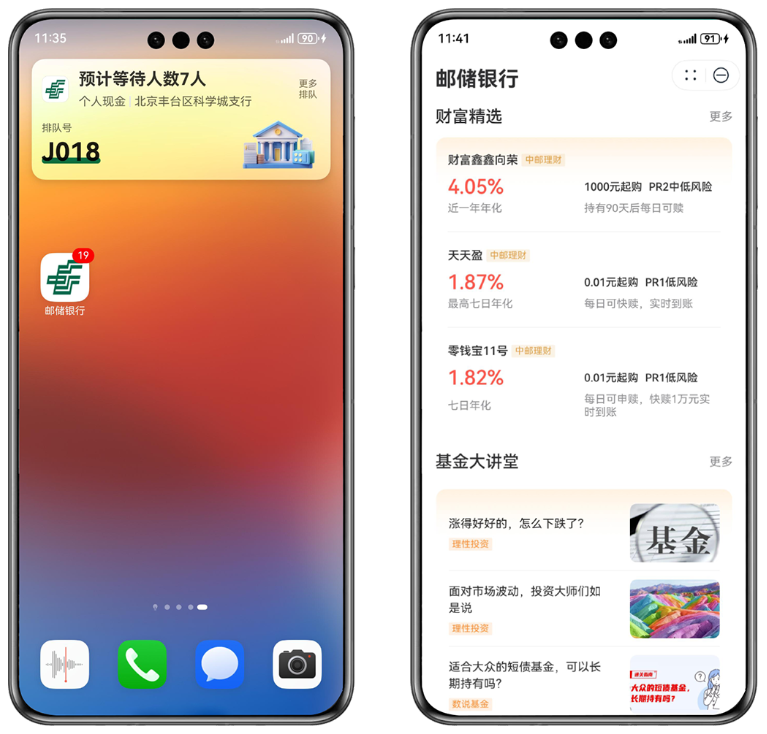 深度擁抱鴻蒙系統(tǒng),打造服務(wù)新體驗(yàn)。郵儲(chǔ)銀行鴻蒙版手機(jī)銀行、郵儲(chǔ)信用卡App不僅全面覆蓋Android版和IOS版全部功能,為客戶(hù)提供“三端”一致的客戶(hù)體驗(yàn),更借助鴻蒙操作系統(tǒng)的新特性,為客戶(hù)打造出多項(xiàng)新體驗(yàn)。例如,在“實(shí)況窗”基礎(chǔ)上實(shí)現(xiàn)的網(wǎng)點(diǎn)預(yù)約,可向用戶(hù)展示網(wǎng)點(diǎn)排隊(duì)信息;基于鴻蒙元服務(wù)的郵儲(chǔ)銀行服務(wù)卡片讓客戶(hù)無(wú)需啟動(dòng)App即可瀏覽最新的投資理財(cái)產(chǎn)品。