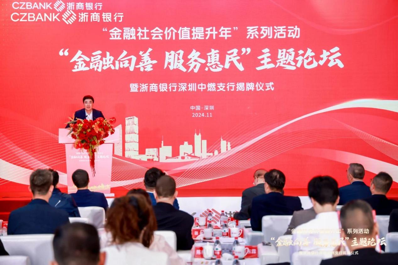 深圳新聞網(wǎng)2024年11月6日訊(記者 朱琳 通訊員 劉璇)為深入貫徹黨的二十屆三中全會和中央金融工作會議精神,11月4日,“金融向善 服務(wù)惠民”主題論壇暨浙商銀行深圳中燃支行揭牌儀式在中國燃氣大廈舉行。本次活動也是浙商銀行“金融社會價值提升年”系列活動之一。國務(wù)院發(fā)展研究中心原黨組成員、副主任余斌,中國上市公司協(xié)會會長宋志平,浙商銀行黨委書記、董事長陸建強,中國燃氣控股有限公司董事局主席劉明輝等嘉賓出席活動。