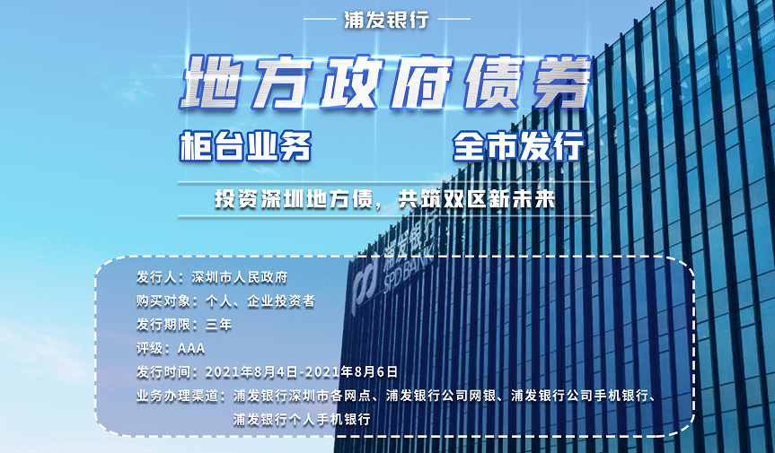 8月4日,深圳市政府將通過商業(yè)銀行柜臺債券市場發(fā)售首批深圳市地方政府債券,浦發(fā)銀行深圳分行成為本次深圳地方債發(fā)行的承辦銀行之一。