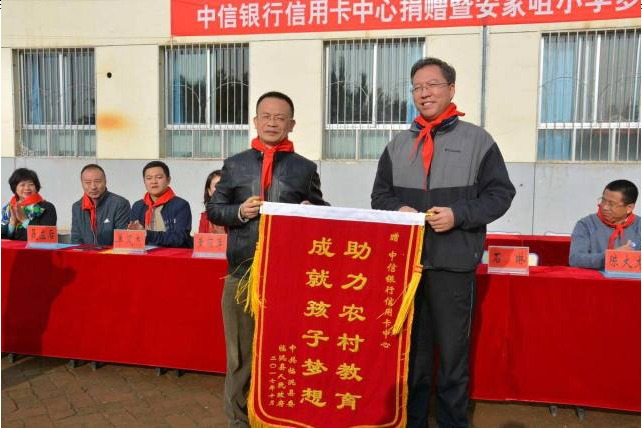 中信銀行信用卡中心捐贈暨安家咀小學夢想中心揭牌儀式在甘肅省臨洮縣安家咀小學舉行。