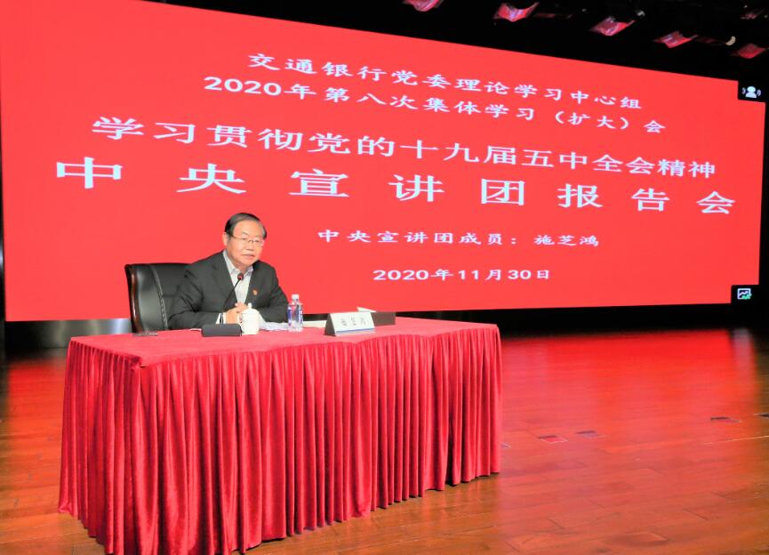 11月30日,交通銀行舉行學(xué)習(xí)貫徹黨的十九屆五中全會(huì)精神中央宣講團(tuán)報(bào)告會(huì)暨黨委理論學(xué)習(xí)中心組第八次集體學(xué)習(xí)(擴(kuò)大)會(huì)。