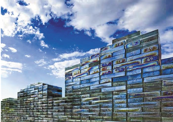 最具代表性的是盛姍姍受邀參加2009年第53屆威尼斯雙年展的作品《開放的長城》,它長約22米,由2200多塊玻璃磚組成,對應(yīng)中國長城存世的2200多年歷史,通身透出七彩光芒;《文字演變》描述了象形文字從原始的狀態(tài)到當代文字的演變;《舞動的絲帶》則以中國當代的絲帶舞為基礎(chǔ),形成色彩與絲帶交織的造型,而這種造型代表了泛文化在公共建筑內(nèi)的交融。此外,《生生不息的竹子》《華夏青銅時代系列》《算盤》等作品,都可以找到鮮明的中國傳統(tǒng)文化元素。