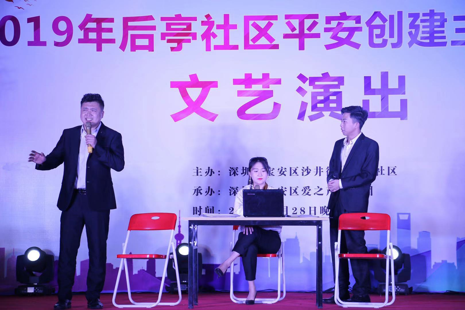 深圳新聞網(wǎng)2019年3月1日訊 (記者 周錦春 通訊員 孫善文)2月28日晚,寶安區(qū)沙井街道后亭社區(qū)在四海云亭廣場舉辦“平安創(chuàng)建宣傳”文藝演出活動(dòng),通過生動(dòng)活潑的方式,推動(dòng)平安社區(qū)的建設(shè)。此項(xiàng)活動(dòng)由寶安區(qū)愛之聲藝術(shù)團(tuán)承辦,約600名社區(qū)居民和轄區(qū)務(wù)工人員參加。