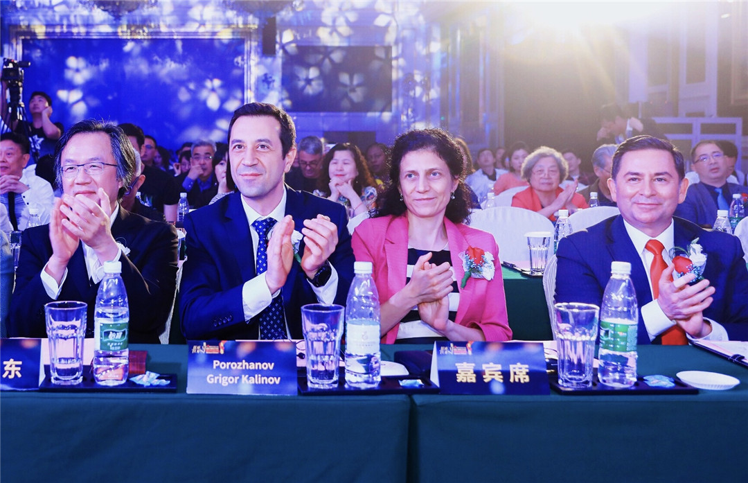 △保加利亞駐中國大使Porozhanov Grigor Kalinov與中俄友好大使、俄羅斯著名影星喜蓮娜為保加利亞DA Architects公司設(shè)計(jì)師頒發(fā)“最佳商業(yè)空間設(shè)計(jì)獎(jiǎng)”
