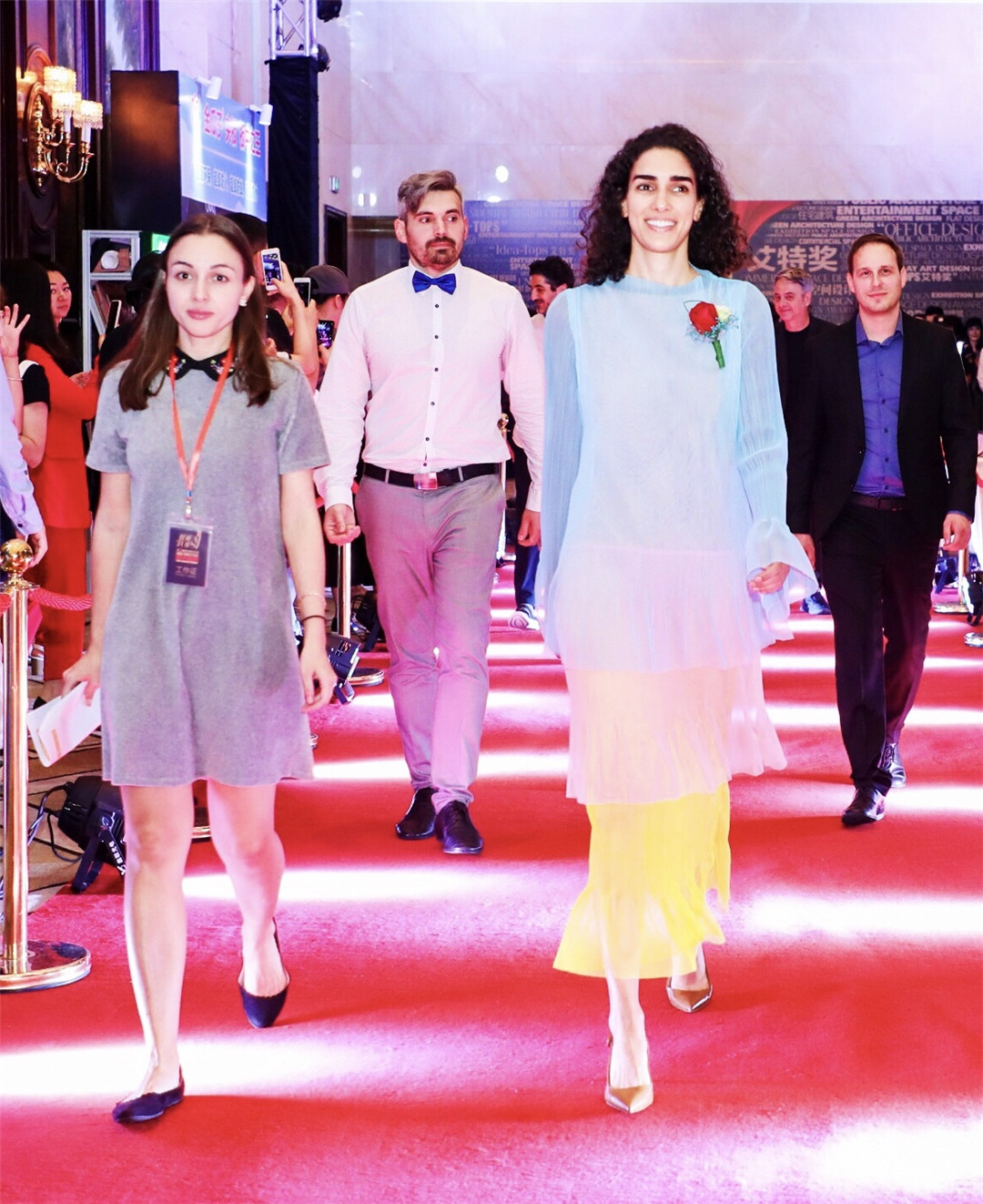 △天津美術(shù)學(xué)院環(huán)境與建筑藝術(shù)學(xué)院創(chuàng)院院長(zhǎng)彭軍、哈佛大學(xué)建筑設(shè)計(jì)博士、臺(tái)灣亞洲大學(xué)副校長(zhǎng)劉育東為黎巴嫩T SAKHI公司設(shè)計(jì)師頒發(fā)“最佳光環(huán)境設(shè)計(jì)獎(jiǎng)”