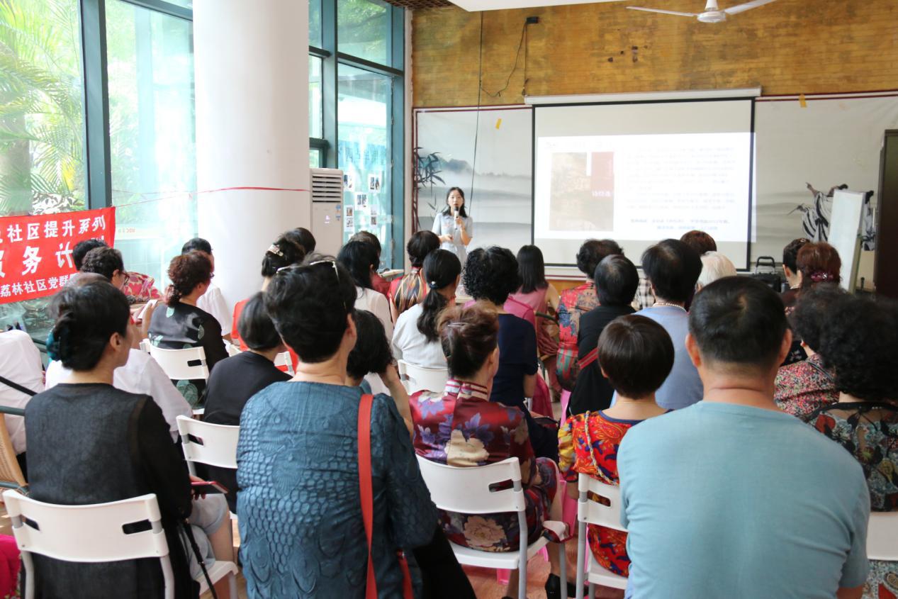 “綠草蒼蒼,白霧茫茫,有位佳人,在水一方。綠草萋萋,白霧迷離,有位佳人,靠水而居......”講座開(kāi)始,邵洋吟唱起鄧麗君的《在水一方》,引得居民朋友輕聲相和,歌聲悠遠(yuǎn)而綿長(zhǎng)。