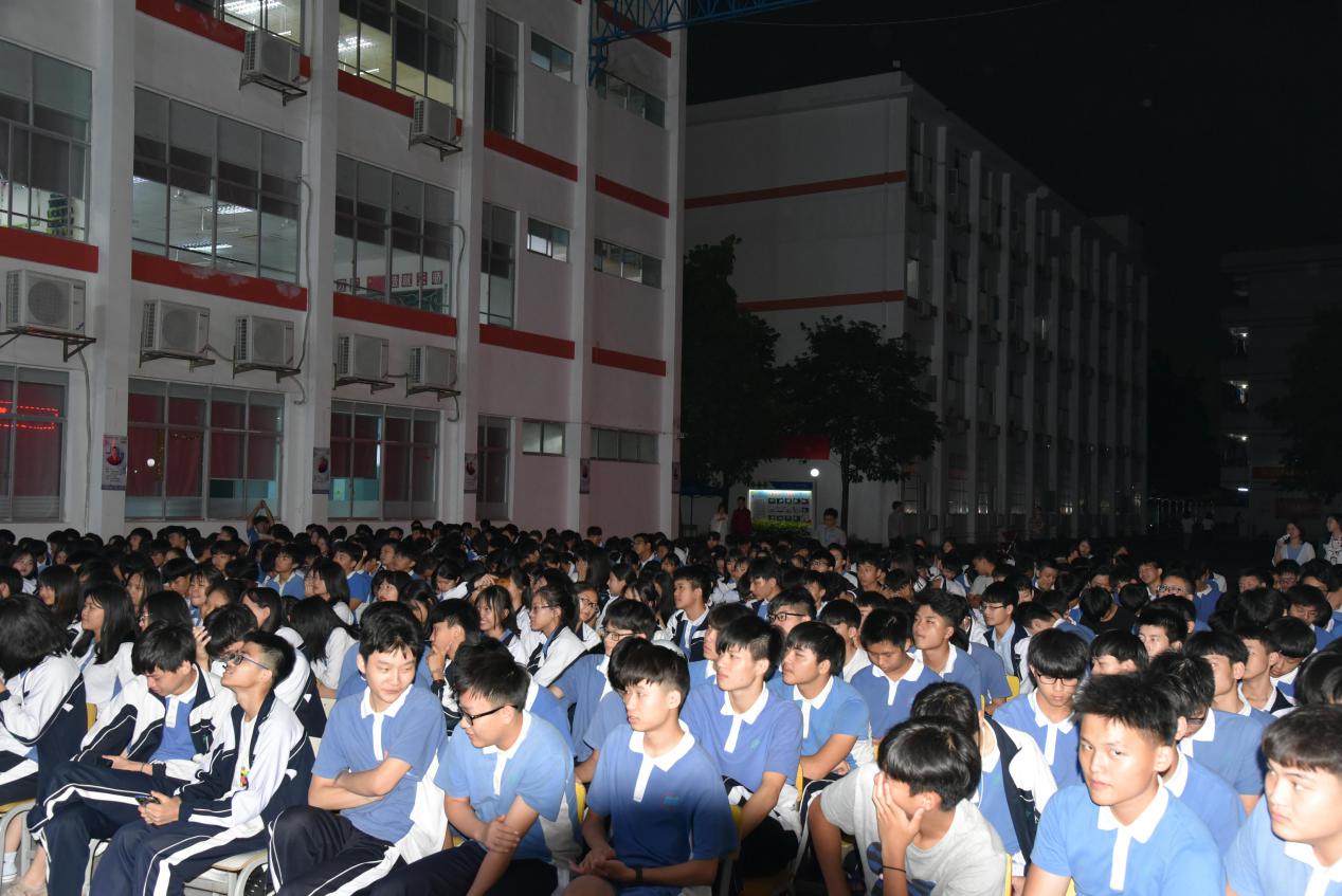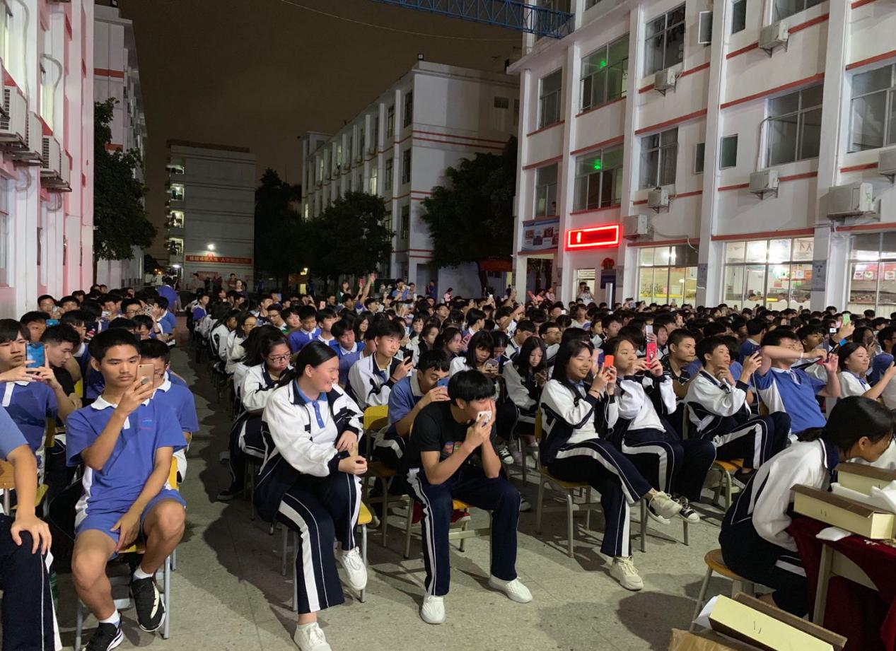 天還亮著,寶山大舞臺前已座無虛席,學生們精神抖擻,笑容可親,靜候一場文化饗宴。