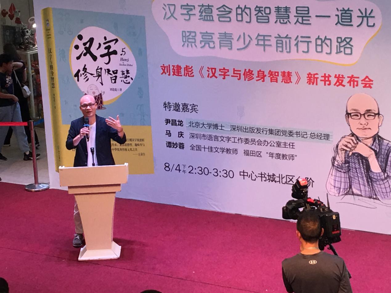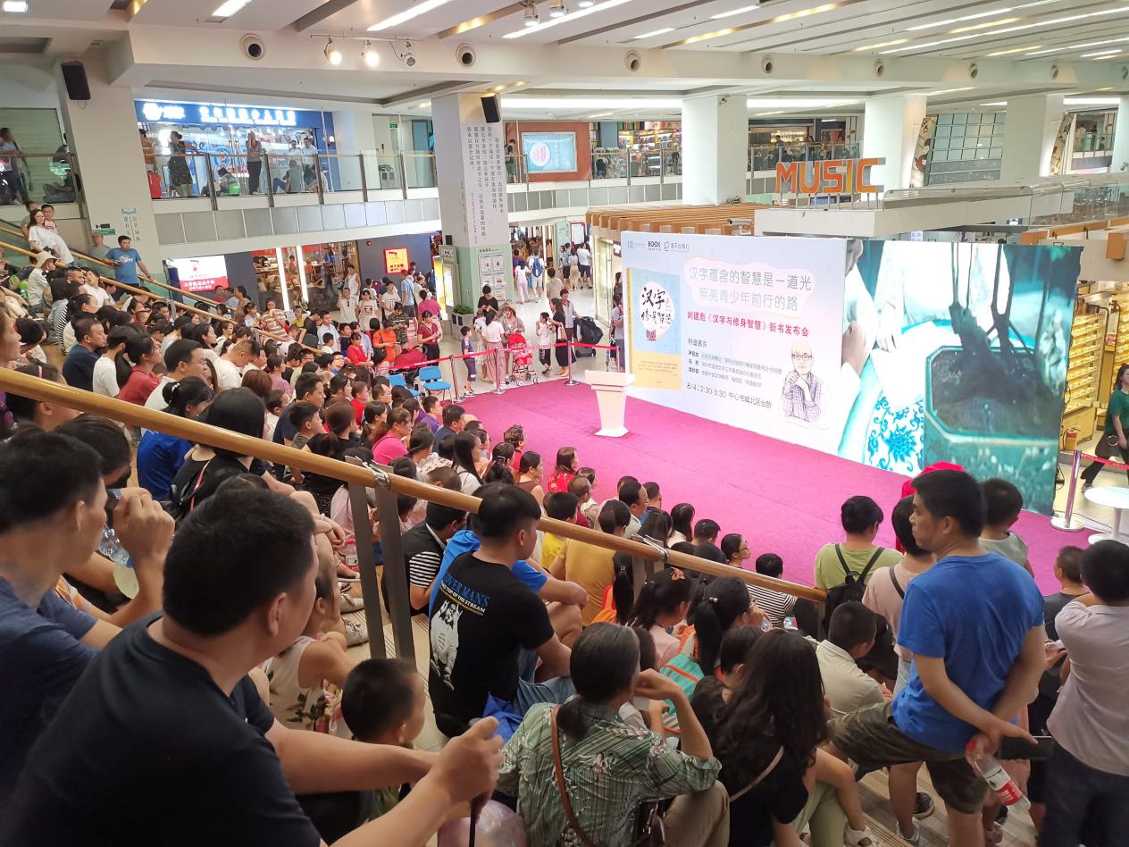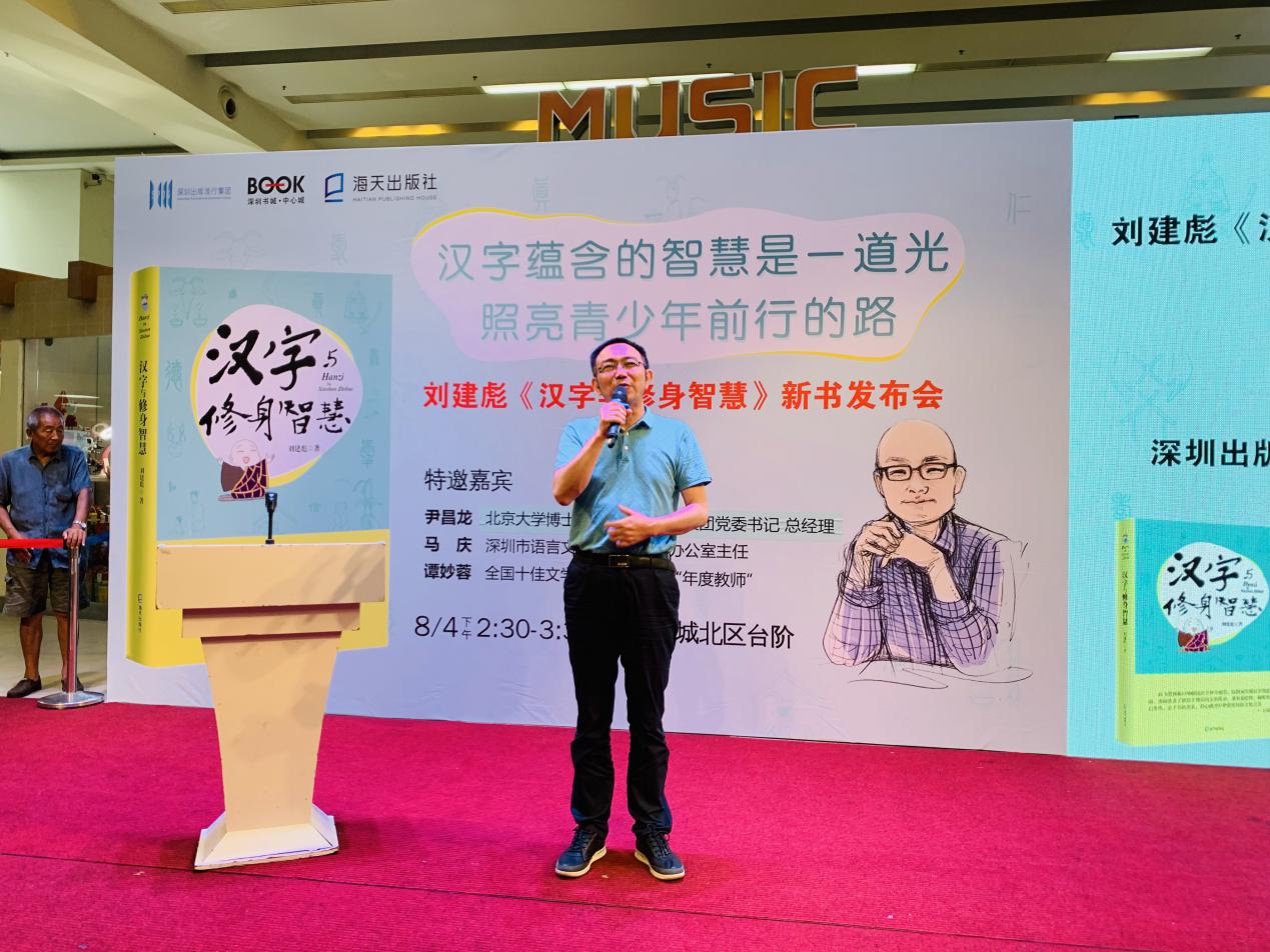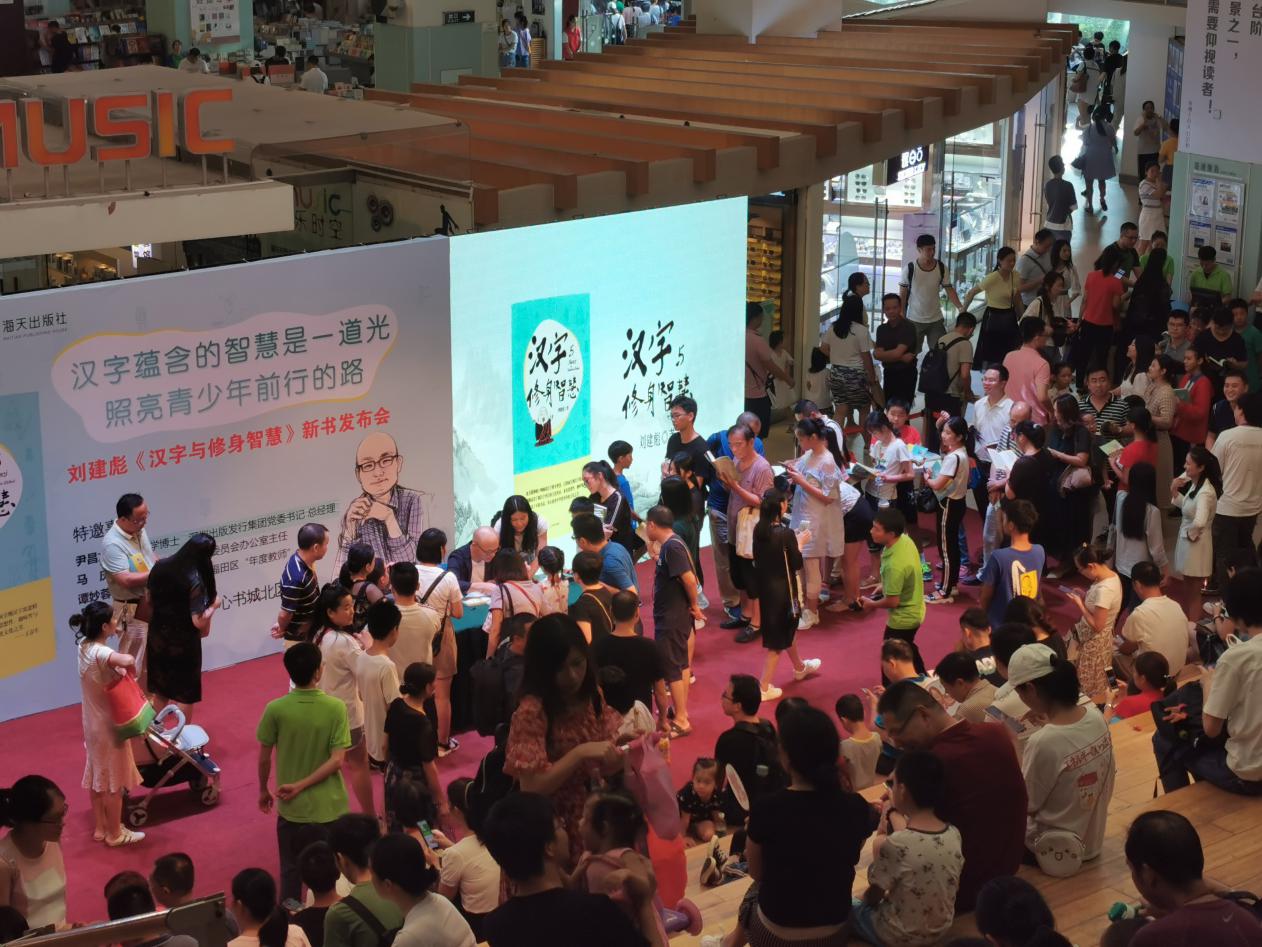深圳新聞網(wǎng)訊 8月4日下午,壹讀書會創(chuàng)始人、知名閱讀推廣人劉建彪《漢字與修身智慧》新書發(fā)布會在深圳書城中心城隆重召開,本次活動由海天出版社和深圳書城中心城共同舉辦,北京大學(xué)文學(xué)博士、深圳出版發(fā)行集團黨委 書記、總經(jīng)理尹昌龍,深圳市語言文字工作委員會辦公室主任馬慶,全國十佳文學(xué)教師、福田區(qū)“年度教師”譚妙蓉三位嘉賓蒞臨現(xiàn)場并致辭。本次新書發(fā)布受到市民的熱烈追捧,活動開始前中心書城北區(qū)臺階、過道以及走廊或坐著或站著翹首以盼的閱讀愛好者。
