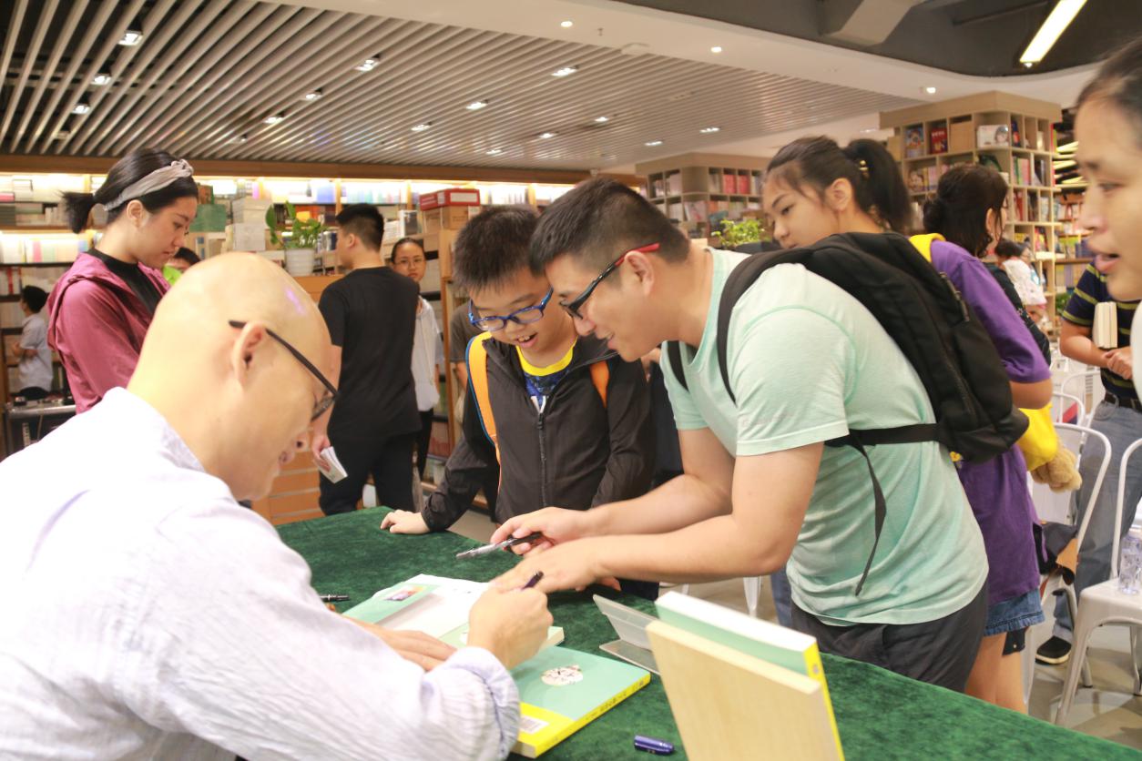 活動(dòng)最后,作者劉建彪先生繼續(xù)與讀者展開交流,為購書讀者簽名。來自東莞的江先生坦言,周末帶著小孩無意進(jìn)入羅湖書城,即被活動(dòng)內(nèi)容吸引,在1個(gè)小時(shí)的活動(dòng)中,感受到了漢字的魅力,感受到了深圳濃郁的文化氛圍?!耙院髱Ш⒆佣鄟砩钲跁牵磿犞v座”,他說。