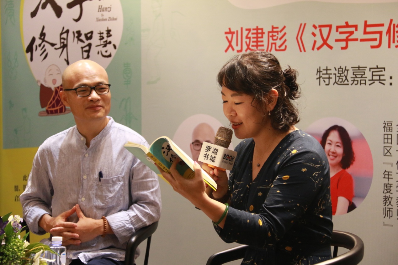 活動(dòng)由深圳書城羅湖城張華女士主持,邀請(qǐng)到壹讀書會(huì)創(chuàng)始人、知名閱讀推廣人、 《漢字與修身智慧》作者劉建彪先生和全國十佳文學(xué)教師、廣東省閱讀推廣“點(diǎn)燈人”譚妙蓉女士擔(dān)任對(duì)話嘉賓,為聽眾講述漢字的起源以及他們根據(jù)切身體會(huì)對(duì)漢字的解讀。