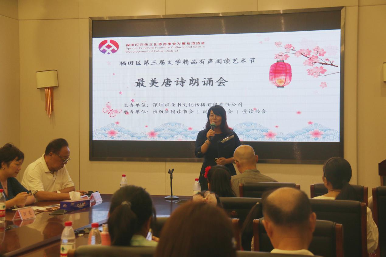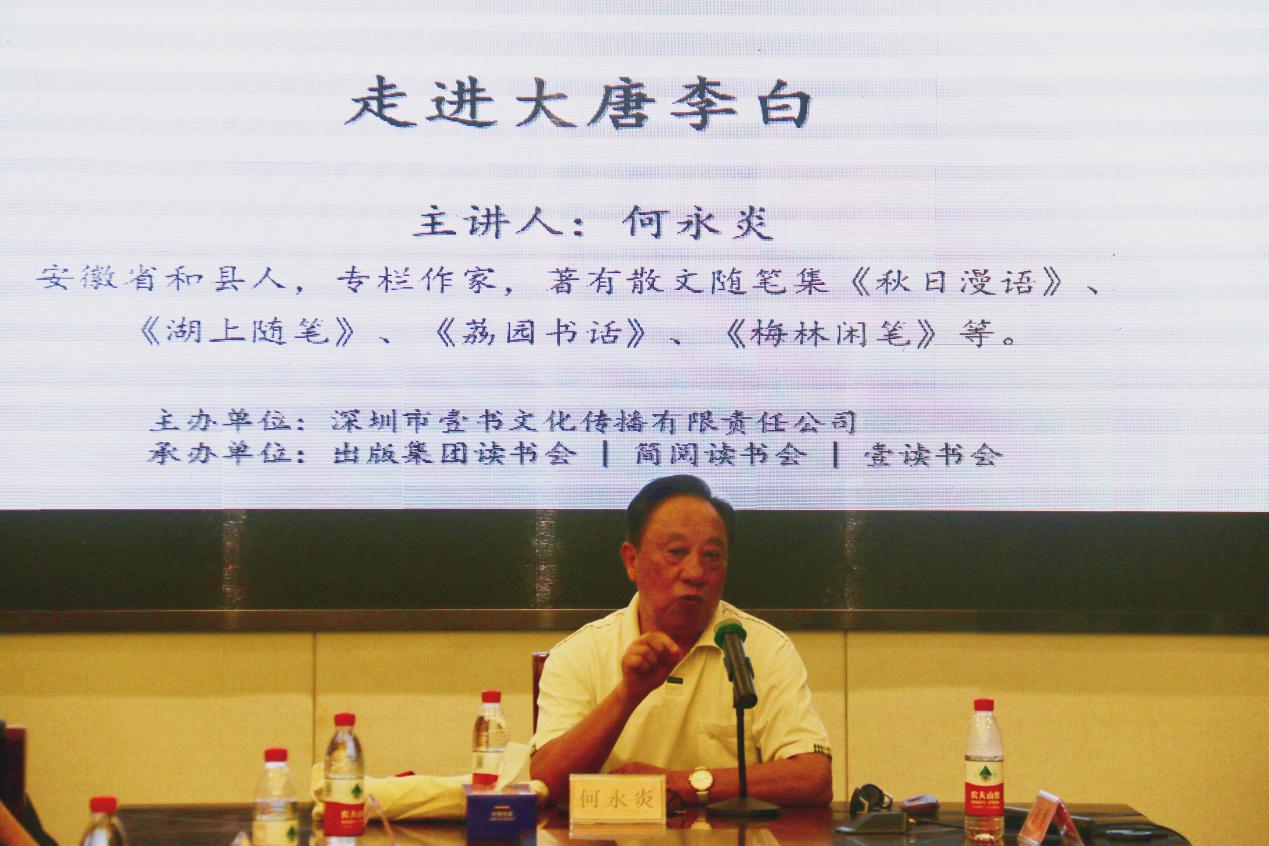 深圳新聞網(wǎng)訊 2019年8月31日下午,“福田區(qū)第三屆文學(xué)精品有聲閱讀藝術(shù)節(jié)”之“唐詩(shī)三百首”專場(chǎng)活動(dòng)“走進(jìn)大唐李白”公益文化講座暨最美唐詩(shī)朗誦會(huì)在簡(jiǎn)閱書吧香蜜湖店三樓多功能室成功舉辦?;顒?dòng)由深圳市壹書文化傳播有限責(zé)任公司、深圳市書城文化投資控股有限公司主辦,出版集團(tuán)讀書會(huì)、簡(jiǎn)閱讀書會(huì)和壹讀書會(huì)承辦,本次活動(dòng)吸引了眾多對(duì)中國(guó)傳統(tǒng)文化富有興趣的詩(shī)歌愛好者,活動(dòng)開始前已座無(wú)虛席,靜候這場(chǎng)關(guān)于李白、關(guān)于詩(shī)歌的文化盛宴。