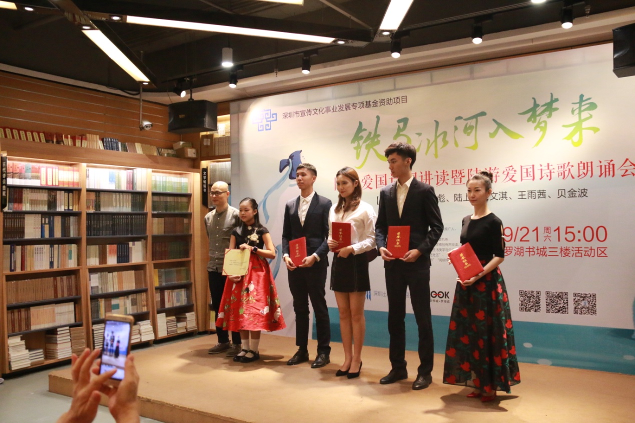 深圳新聞網(wǎng)訊 9月21日下午,由深圳市宣傳文化事業(yè)發(fā)展專項基金資助的“新時代中華優(yōu)秀傳統(tǒng)文化進社區(qū)”項目之“鐵馬冰河入夢來”陸游愛國詩詞公益講座暨陸游愛國詩詞朗誦會在羅湖書城三樓活動區(qū)成功舉辦。本次活動由深圳市壹書文化傳播有限責任公司、深圳書城羅湖城共同主辦,壹書閱讀推廣人、愛詩家創(chuàng)始人劉建彪先生擔任主講嘉賓?;顒由形撮_始,現(xiàn)場已座無虛席,觀眾們對講座充滿了期待,更有小朋友們朗誦起了陸游的名句。