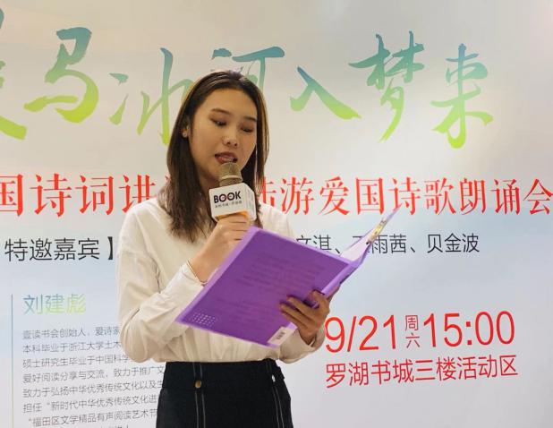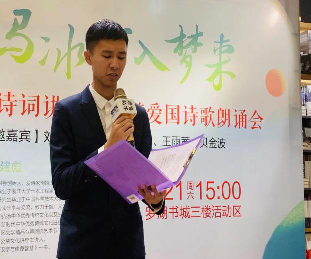 緊接著,陸游愛國詩詞朗誦會正式開始。劉亦欣小朋友聲情并茂地朗誦了《我心中的祖國》,作為特別表演節(jié)目喜迎國慶節(jié)。隨后,優(yōu)秀的詩詞愛好者們齊聚一堂,伴隨著或慷慨悲涼,或激昂向上的背景音樂,為在場觀眾帶來了一場豐富的視聽盛宴,如陸上老師的一首《三月十七夜醉中作》,音調(diào)鏗鏘,情緒飽滿,贏得掌聲陣陣。