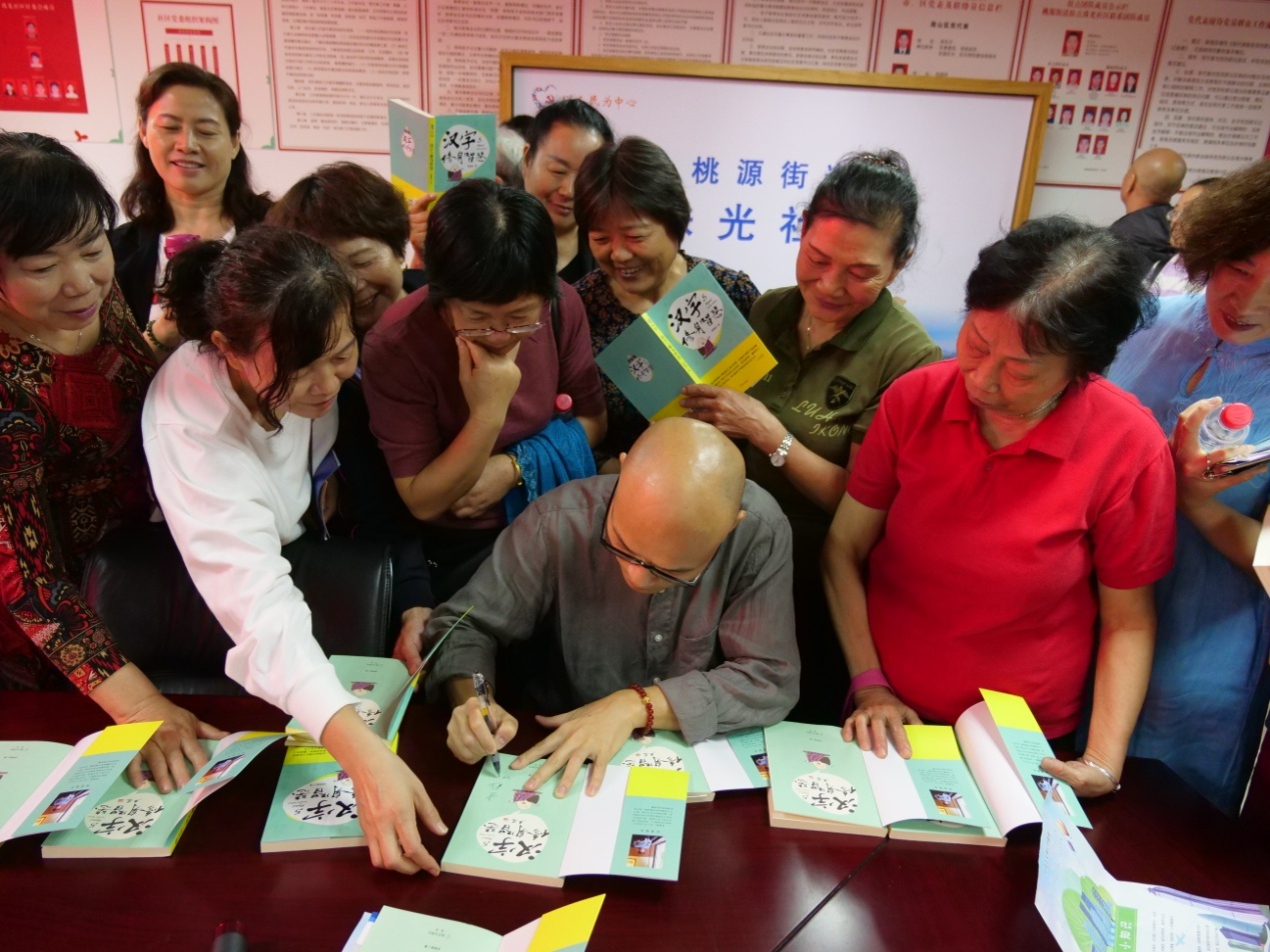 講座結(jié)束之后,社區(qū)居民紛紛拿起手中的創(chuàng)建文明城市學(xué)習(xí)讀本《漢字與修身智慧》要求劉建彪老師簽名,“這是一本很棒的美德教育親子讀物,回去和孫子認(rèn)真品讀每個(gè)漢字,借助優(yōu)秀傳統(tǒng)文化不斷提升個(gè)人的文明素養(yǎng)?!弊≡趯氈榛▓@的退休老師丁阿姨說(shuō)。 (通訊員:楊婷姻 攝影:田正中)