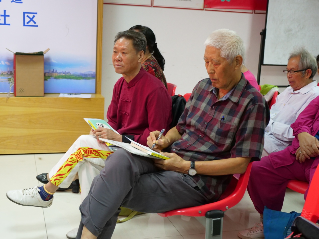 活動(dòng)現(xiàn)場(chǎng),珠光社區(qū)的叔叔阿姨們坐得整整齊齊,人手一本《深圳市民公約》冊(cè)子和《漢字與修身智慧》學(xué)習(xí)資料,認(rèn)真地翻閱著。