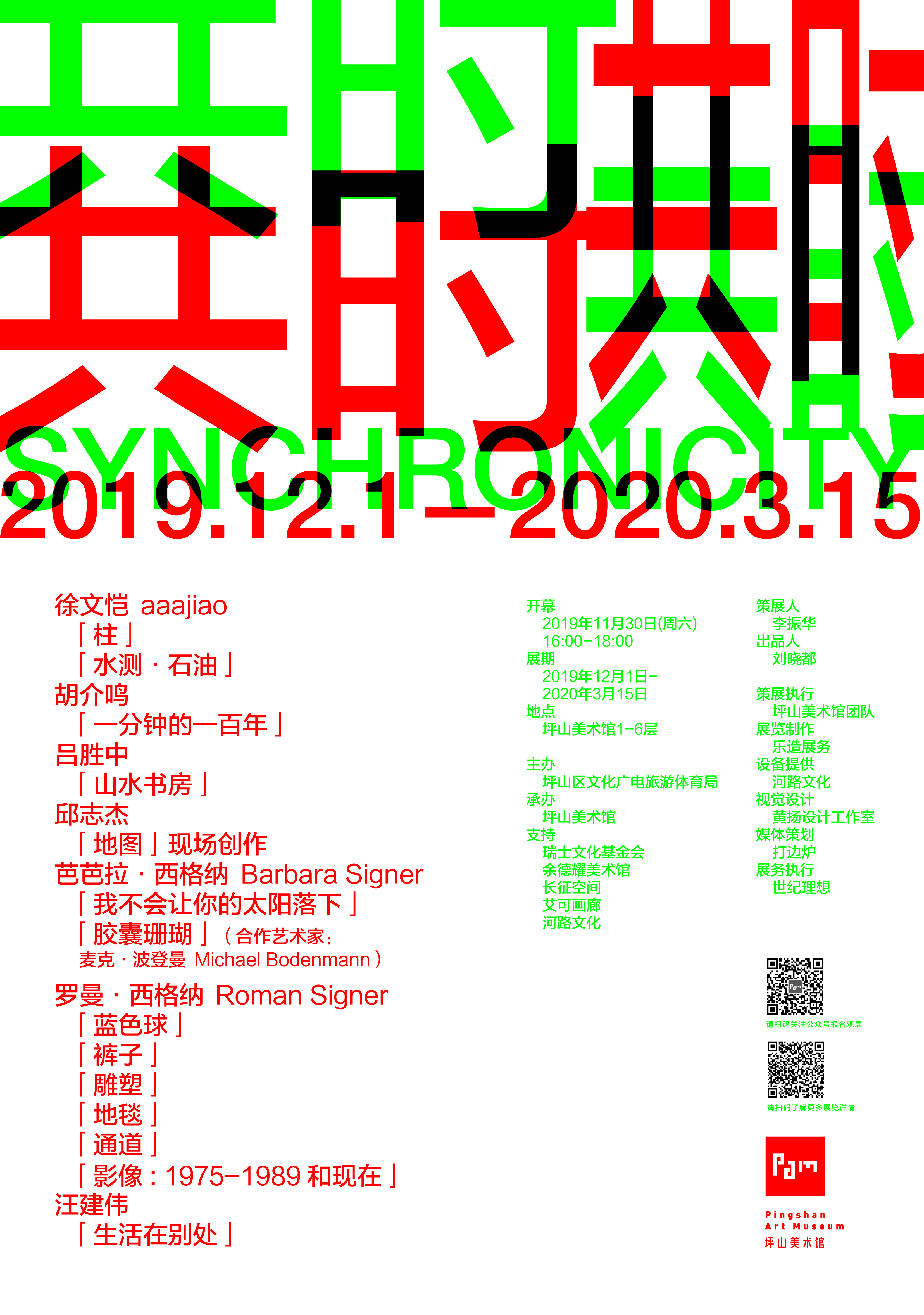 此次展覽的主題“共時”,源于瑞士心理學家榮格(Carl Gustav Jung1875-1961)于1920年代提出的一個概念——“共時性”(英文:Synchronicity,又譯“同時性、同步性”),其內(nèi)涵包括了“有意義的巧合”,用于表示在沒有因果關(guān)系的情況下出現(xiàn)的事件之間的意義連接。