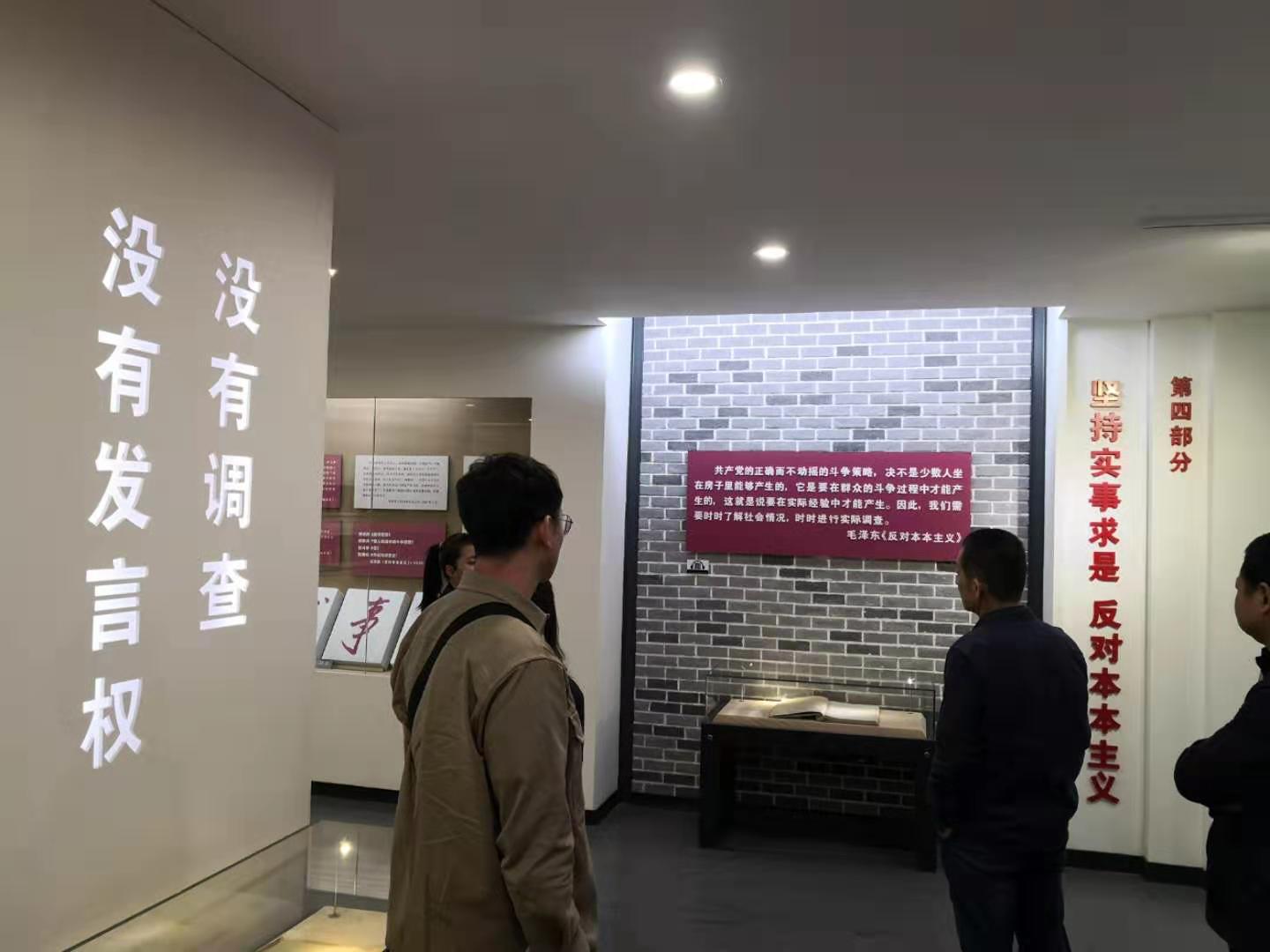 在參觀陳列館時,因為天色已黑,而陳列館出于對珍貴文物的保護,有許多地方是沒有安裝電燈的。于是,大家就開著手機里的照明燈,一邊聽著講解員細(xì)致耐心的講解,一邊細(xì)細(xì)察看一件件保存不易的革命文物,有收藏《尋烏調(diào)查》手稿的木盒和復(fù)制品,有毛澤東當(dāng)年調(diào)查時地點、人物介紹,還有當(dāng)年開展《尋烏調(diào)查》背景的具體剖析等等。待到參觀結(jié)束,時間已經(jīng)是晚上七八點左右了,大家雖然饑腸轆轆,依然神情振奮。“沒有調(diào)查沒有發(fā)言權(quán)”的著名論斷,似乎為已經(jīng)為此行采風(fēng)定下明確的基調(diào)。