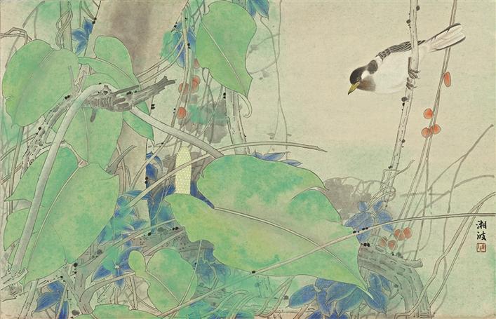 觀陳湘波之畫,初見色彩章華,畫面滿紙,復(fù)見清淡閑野,如水溫柔。陳湘波用力最大、用情最深的工筆畫,有著流暢而精細(xì)的線條、準(zhǔn)確而淡雅的用色,構(gòu)成清新而沉穩(wěn)的畫面效果。細(xì)細(xì)品賞“春、夏、秋、冬”的畫作時,觀眾可以體會得到花鳥蟲魚在風(fēng)雨日月中的生命節(jié)律與作者的情感節(jié)律相通對應(yīng),從而將自然生命的豐富性和獨(dú)特性呈現(xiàn)出來。自然景物、花草蟲魚,都有自己獨(dú)特的生命,其縱向的發(fā)芽長葉開花凋謝的生命軌跡,和橫向的對風(fēng)霜雨雪、日月山河的承負(fù)和感受,是變化無窮意味無盡的。