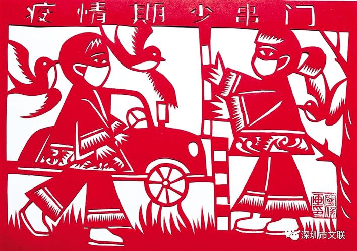 深圳商報(bào)2020年02月14日訊 (記者 魏沛娜)一雙雙巧手,一幅幅剪紙,別出心裁,寓意深遠(yuǎn)。連日來,袁曼君、吳自力、劉寧侯等一批深圳民間藝術(shù)家積極響應(yīng)深圳市文聯(lián)發(fā)出的《勇于擔(dān)當(dāng),全心戰(zhàn)疫——致全市文藝工作者倡議書》,通過剪紙等民間工藝作品生動(dòng)形象地宣傳抗疫知識(shí),頗受網(wǎng)友歡迎。通俗易懂的剪紙作品,線條流暢,形象逼真,巧妙地把對(duì)一線抗疫工作者的致敬和祝福融入其中。