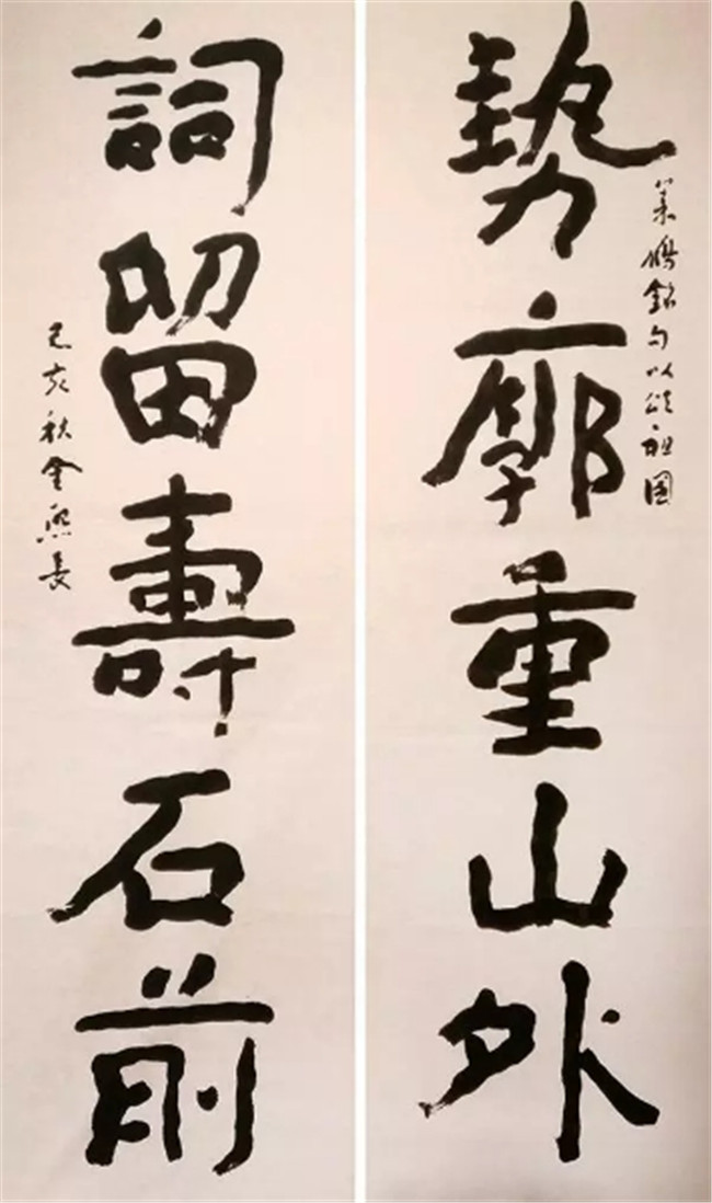“筆筆有出處,字字有來歷。每個字用筆中鋒但結(jié)字奇古;書風(fēng)野逸但又視覺大氣。正如創(chuàng)作者所言:中國是歷史悠久的文化大國,所以中國的文字書寫應(yīng)該和大國文化相吻合的,以雄渾大氣為主要審美意識的表現(xiàn)手法方能展現(xiàn)中國精神。在技法上他還認(rèn)為,秀媚易作雄渾難;小巧易作高簡難。故在本次《金體》創(chuàng)作上的審美觀念上,他仍以三個第一為導(dǎo)向,即“結(jié)體以正大老成為第一,用筆以簡重真切為第一,書風(fēng)以高古偉岸為第一。
