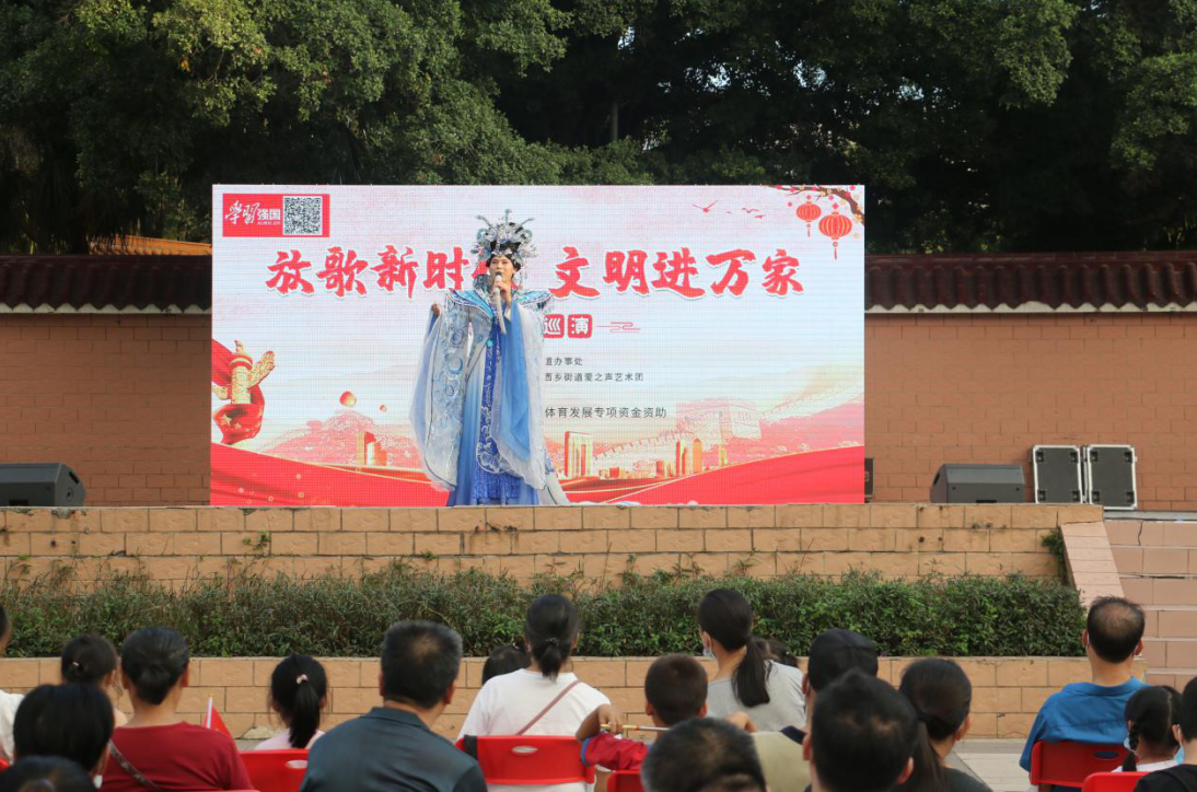 “放歌新時(shí)代 文明進(jìn)萬家”文藝巡演由深圳市寶安區(qū)西鄉(xiāng)街道辦主辦,深圳市寶安區(qū)西鄉(xiāng)街道愛之聲藝術(shù)團(tuán)承辦,寶安區(qū)宣傳文化體育發(fā)展專項(xiàng)資金資助。來自愛之聲藝術(shù)團(tuán)的深圳一線文藝工作者們通過文藝表演的形式為廣大居民奉獻(xiàn)精彩的文藝大餐,用群眾喜聞樂見的形式展示西鄉(xiāng)發(fā)展變化,再現(xiàn)有志之士在西鄉(xiāng)干事創(chuàng)業(yè)、成就夢想的情景,并宣傳了黨的十九屆五中全會(huì)精神,深受群眾歡迎。