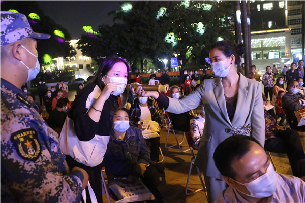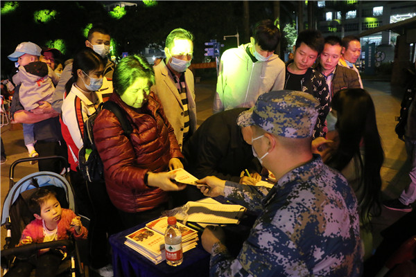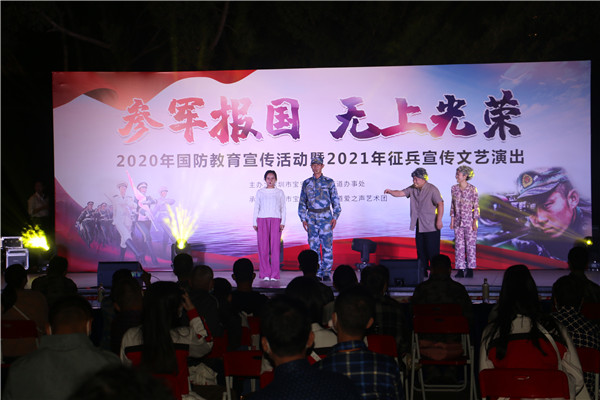 演出中間穿插著跟征兵主題相關(guān)的有獎問答環(huán)節(jié),普及征兵和國防知識,增強活動趣味性,互動性,現(xiàn)場的群眾踴躍參與答題。