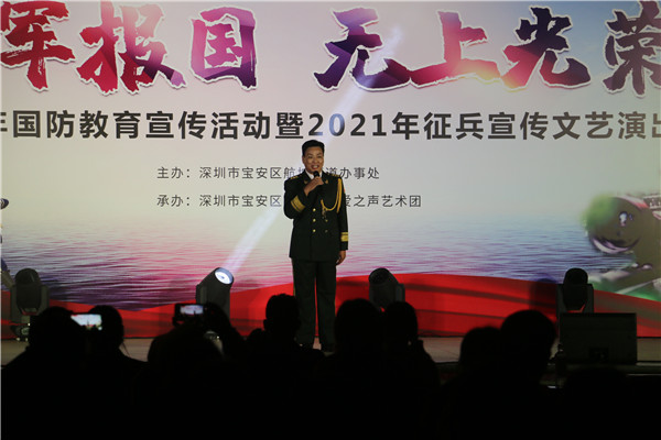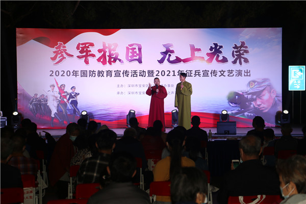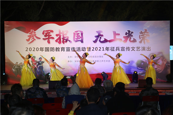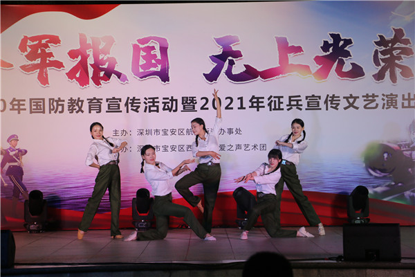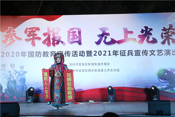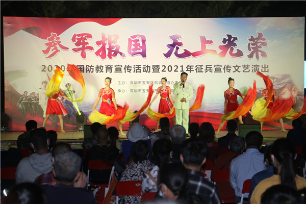 見圳客戶端?深圳新聞網(wǎng)2020年12月2日訊 為增強轄區(qū)居民的國防意識,做好今年冬季征兵工作,12月1日,深圳市寶安區(qū)航城街道辦“參軍報國 無上光榮”為主題的國防教育宣傳活動暨2021年征兵宣傳文藝演出在航城街道辦成功舉辦。此次活動由深圳市寶安區(qū)航城街道辦主辦,寶安區(qū)西鄉(xiāng)街道辦愛之聲藝術(shù)團承辦。