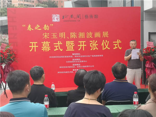 見圳客戶端?深圳新聞網(wǎng)2021年4月26日訊(記者 周錦春)《 春之韻-宋玉明陳湘波畫展》今日在龍崗區(qū)布吉街道大芬油畫村油畫路1號三樓珍風(fēng)閣畫廊隆重開幕,展期10日至5月6日結(jié)束,為期十天。據(jù)了解,是次畫展是在中共深圳市龍崗區(qū)委宣傳部、龍崗區(qū)文化廣電旅游體育局指導(dǎo)下,由大芬油畫村文化發(fā)展中心主辦,深圳珍風(fēng)閣藝術(shù)館、北京恒盛鼎國際拍賣公司共同承辦的,深圳市美術(shù)家協(xié)會、武夷山獨(dú)韻茶葉公司提供專業(yè)支持和贊助。畫展嘉賓和書畫愛好者近百人參加了開幕儀式。